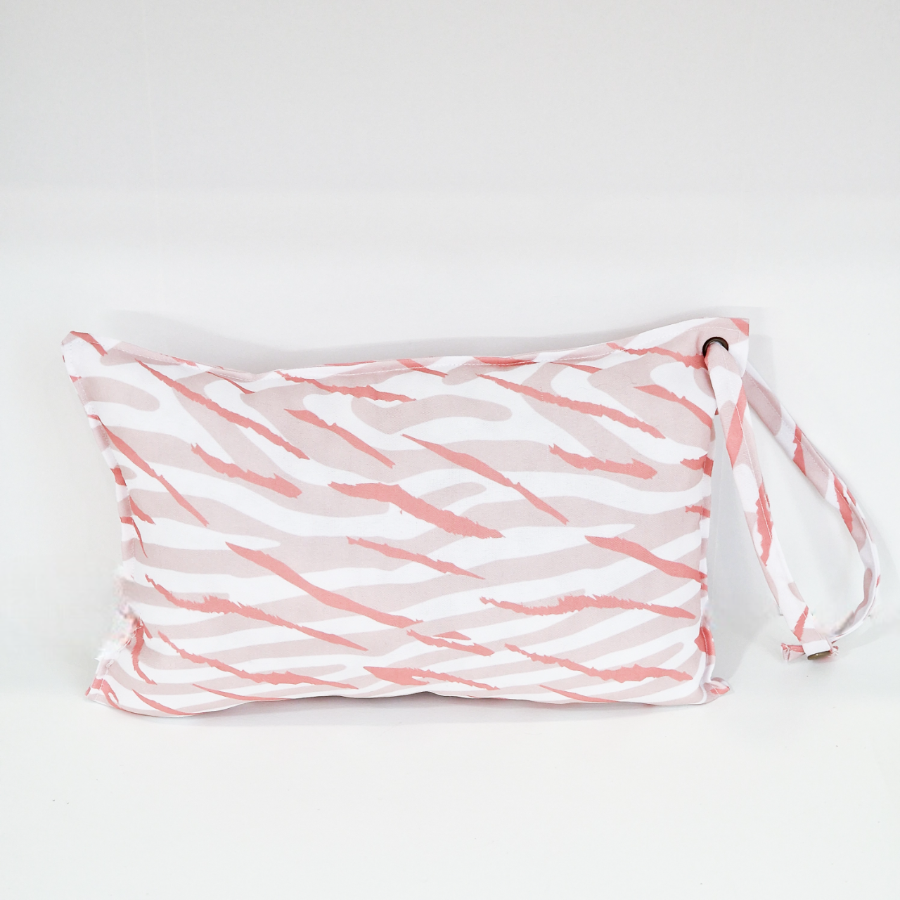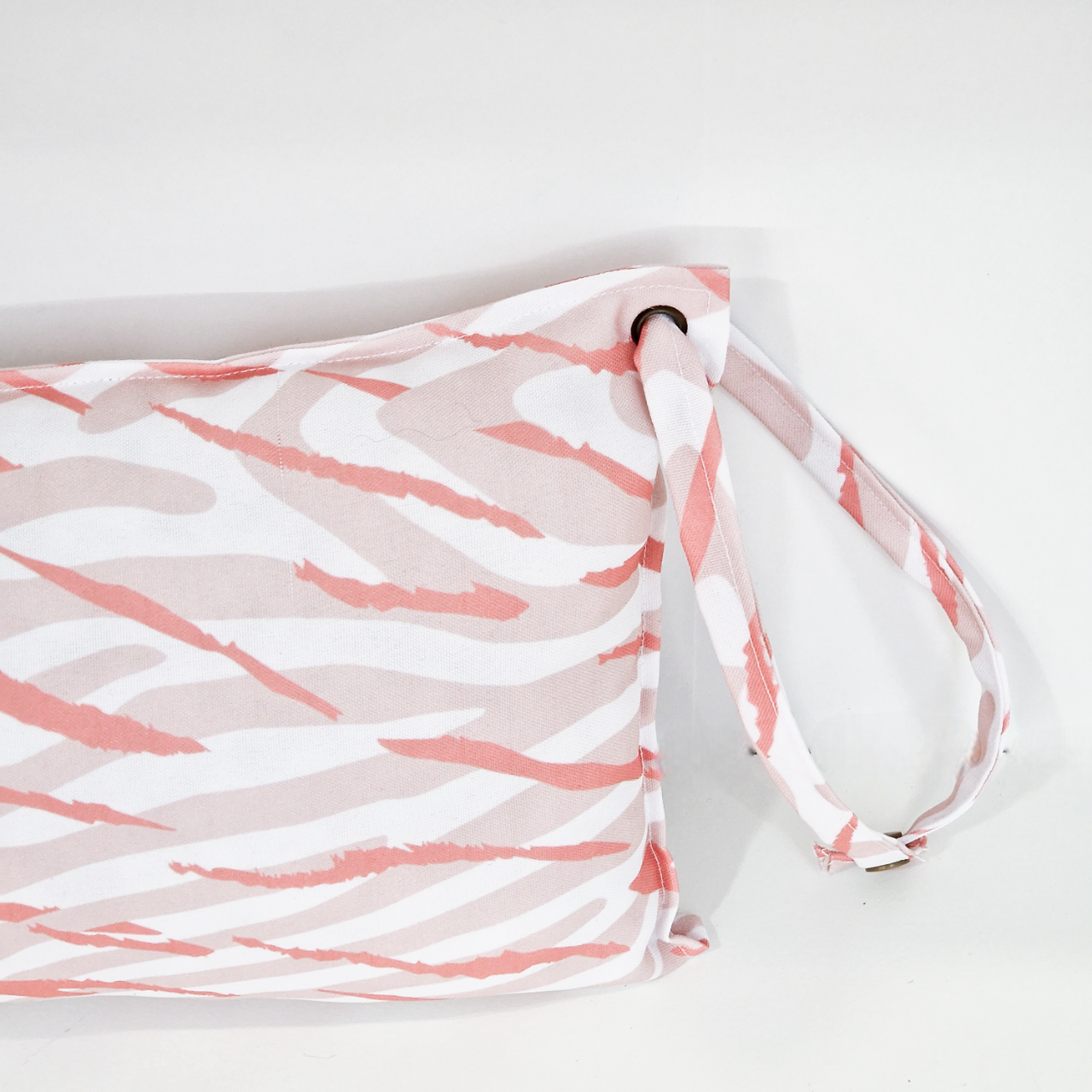 • Bolsa de tecido com padrão abstracto cor-de-rosa e branco com alça e botão metálico