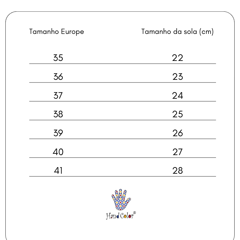 • Tabela de tamanhos de calçado com medidas em centímetros