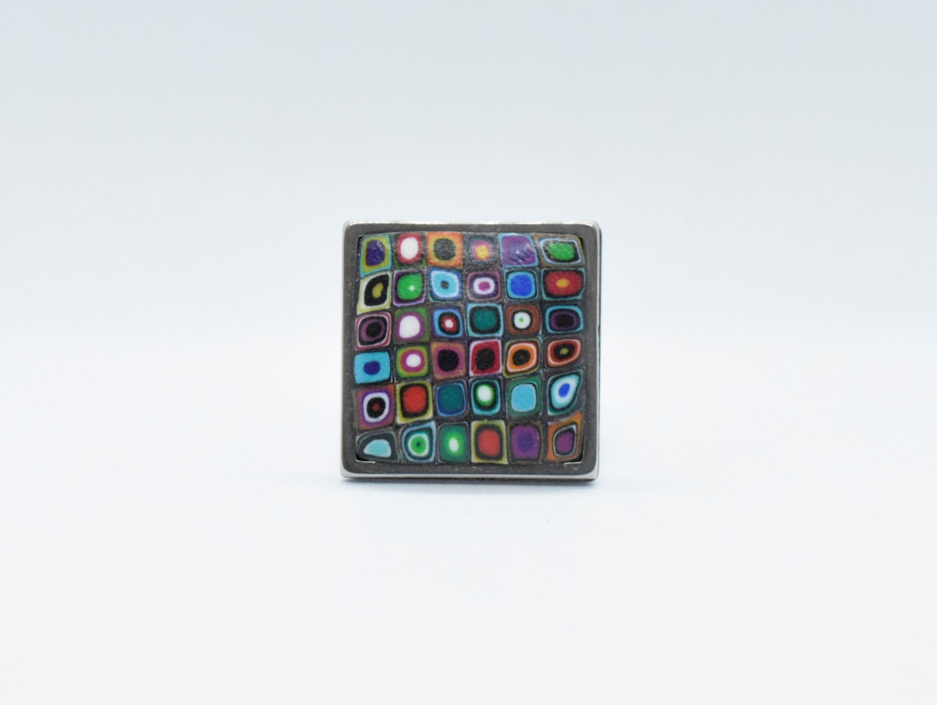 • Anel quadrado colorido com padrões de quadrados pequenos em várias cores sobre fundo branco