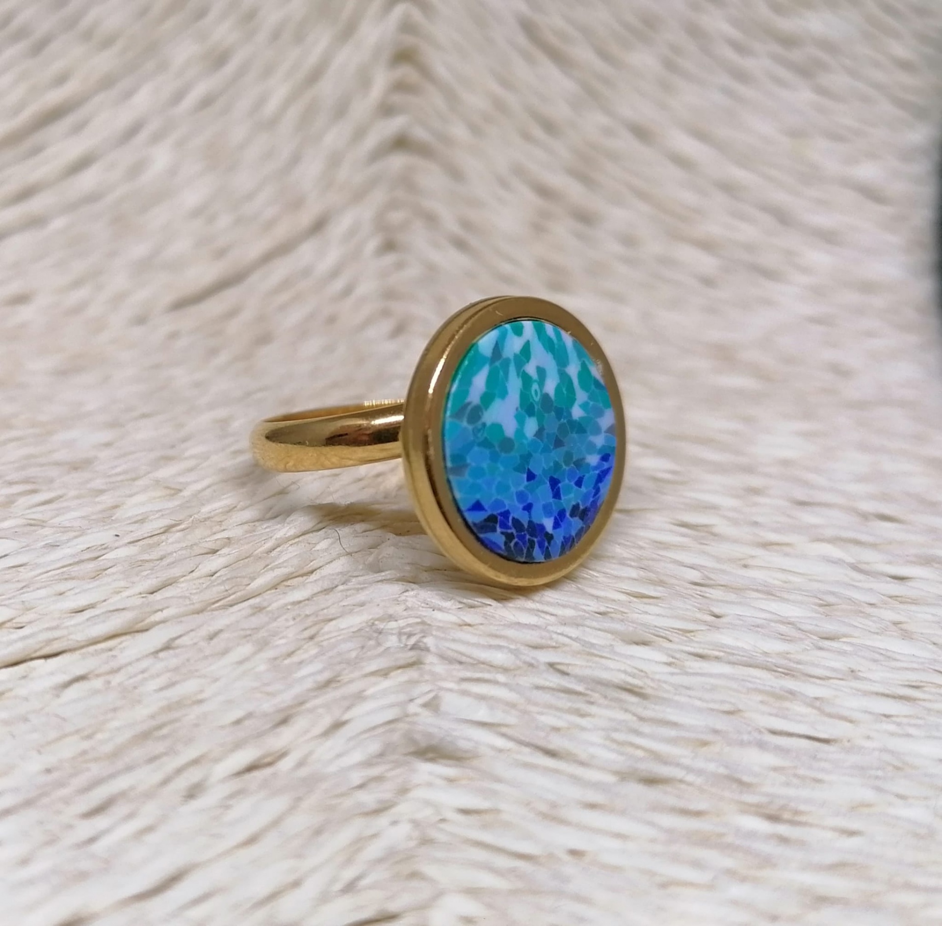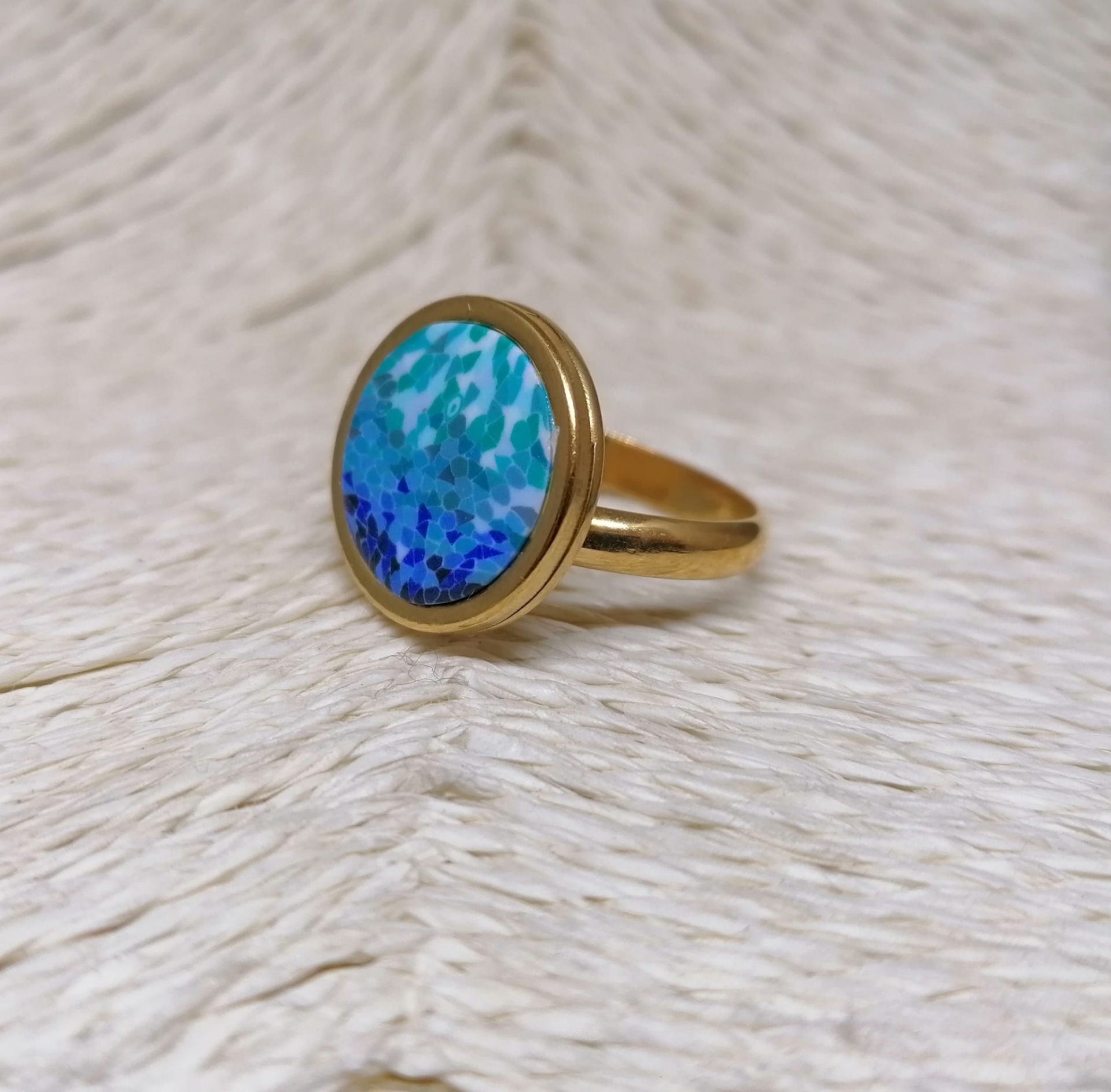 Anel Gaudí - Azuis 12,50 € Desconto de %. IVA incluído. Partilhar Comprar Contactar Características Cores da argila: Azuis Metal: Aço inoxidável dourado Diâmetro anelar: ajustável Dimensões e Peso: 14mm de diâmetro / Peso: 3,5 gr As cores dos produtos poderão sofrer ligeiras alterações devido à reprodução fotográfica. Tags anelaço inoxidáveldouradogaudíazulargilamade in portugualanel antialergico