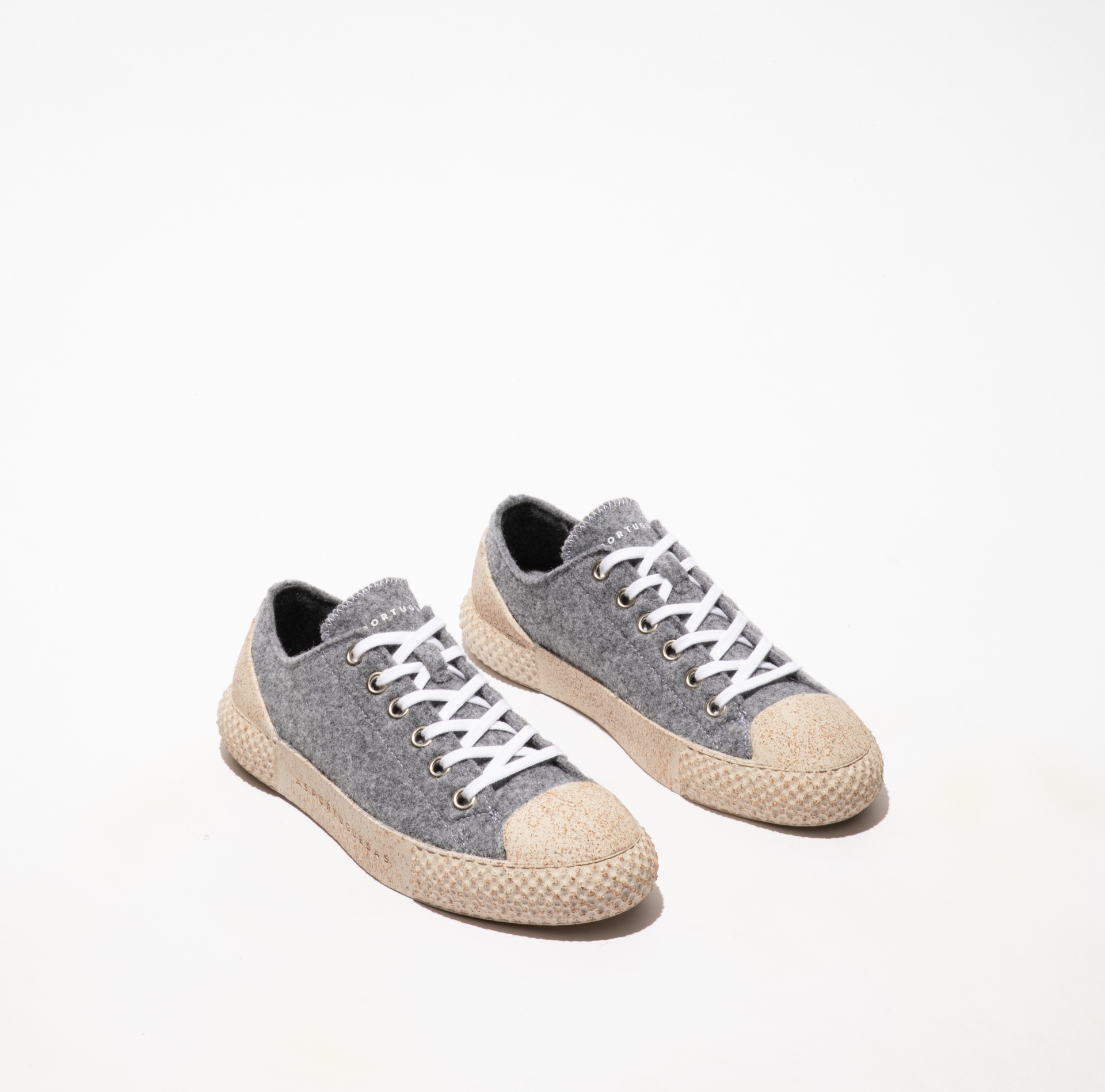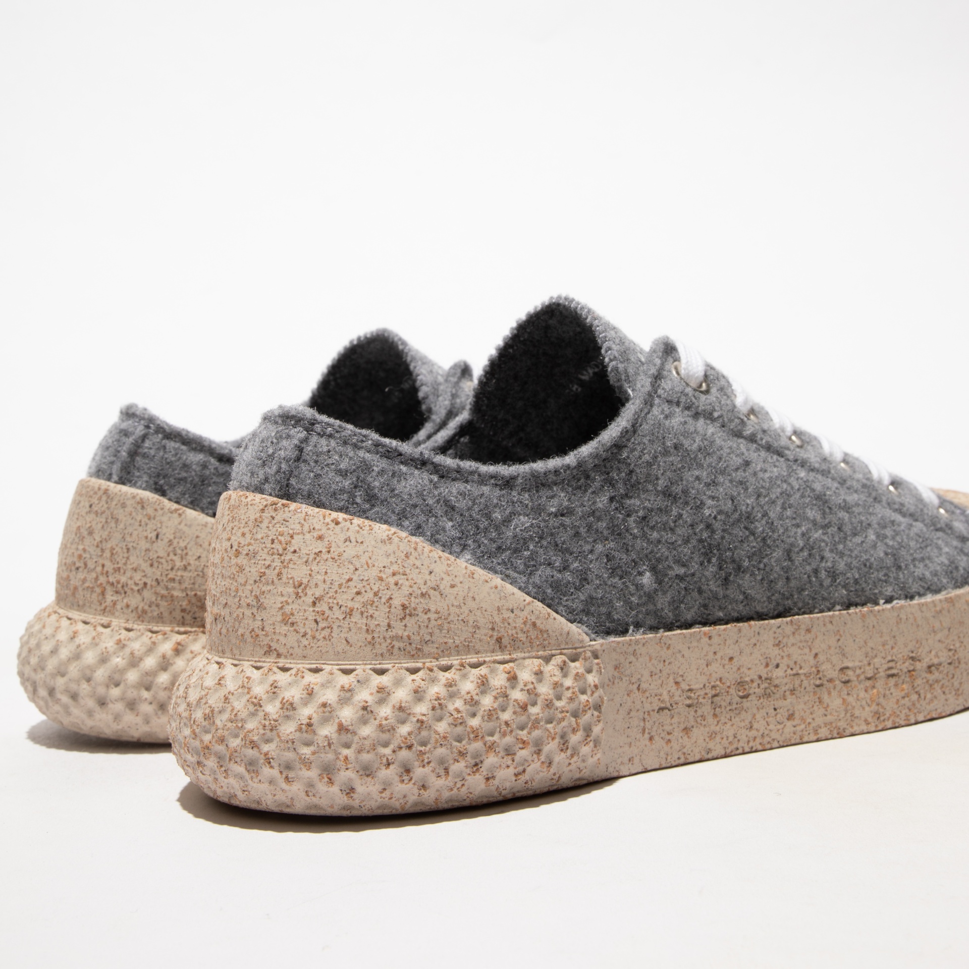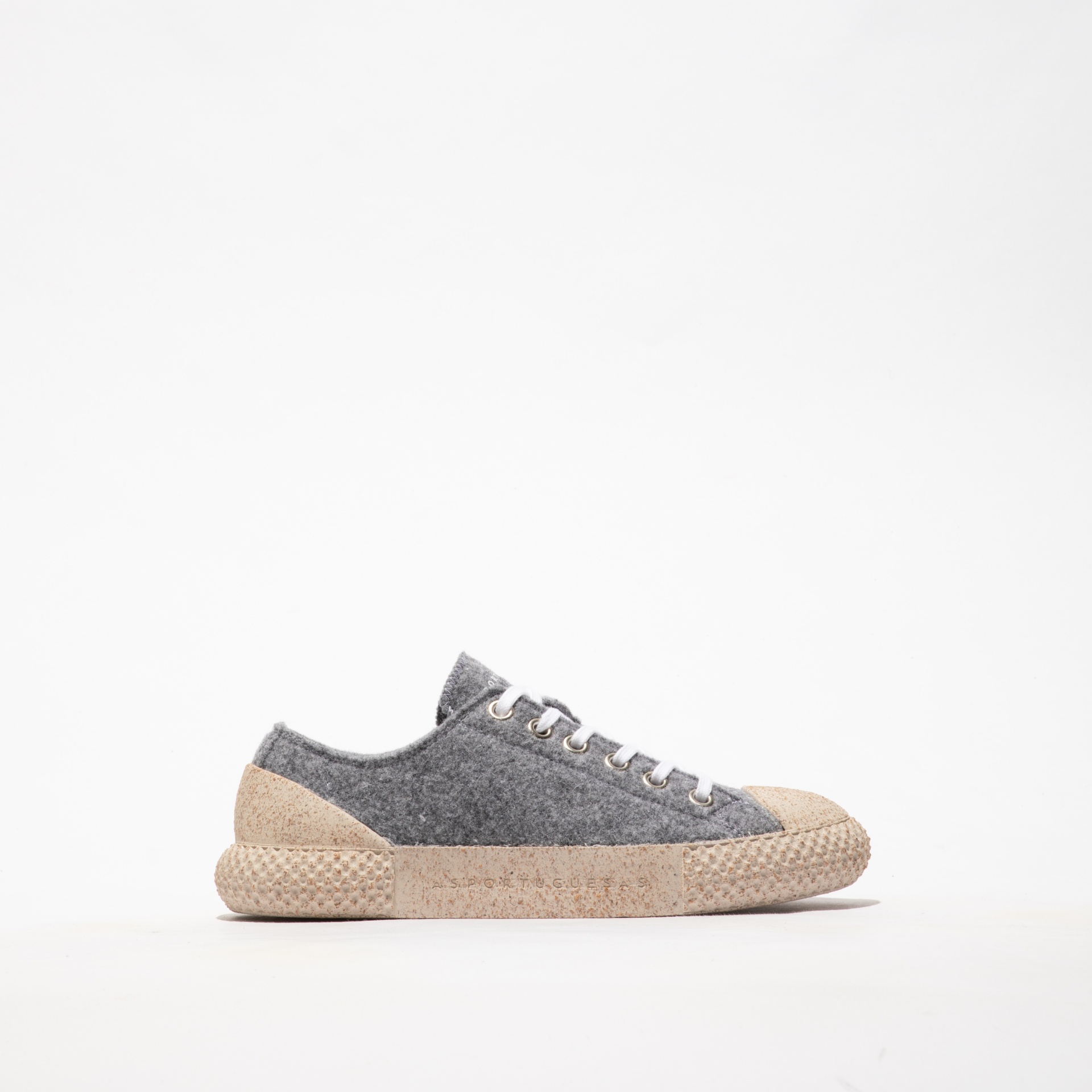 • Ténis cinzento em tecido feltro com sola castanha texturizada