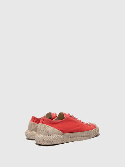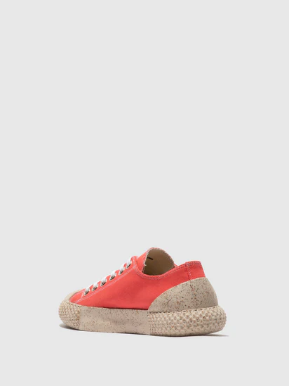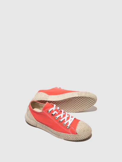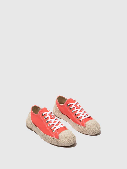 • Par de ténis baixos cor de coral com sola e biqueira de borracha bege