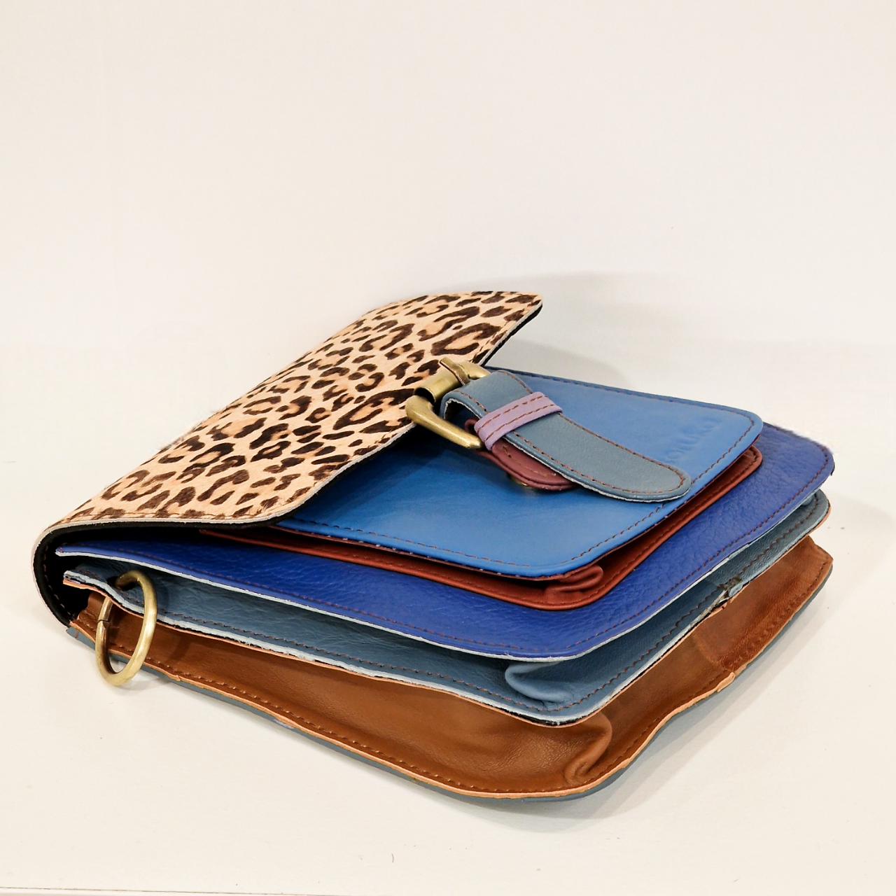 Bolsa 100% couro reciclado, inclui uma alça de couro ajustável e extensível.