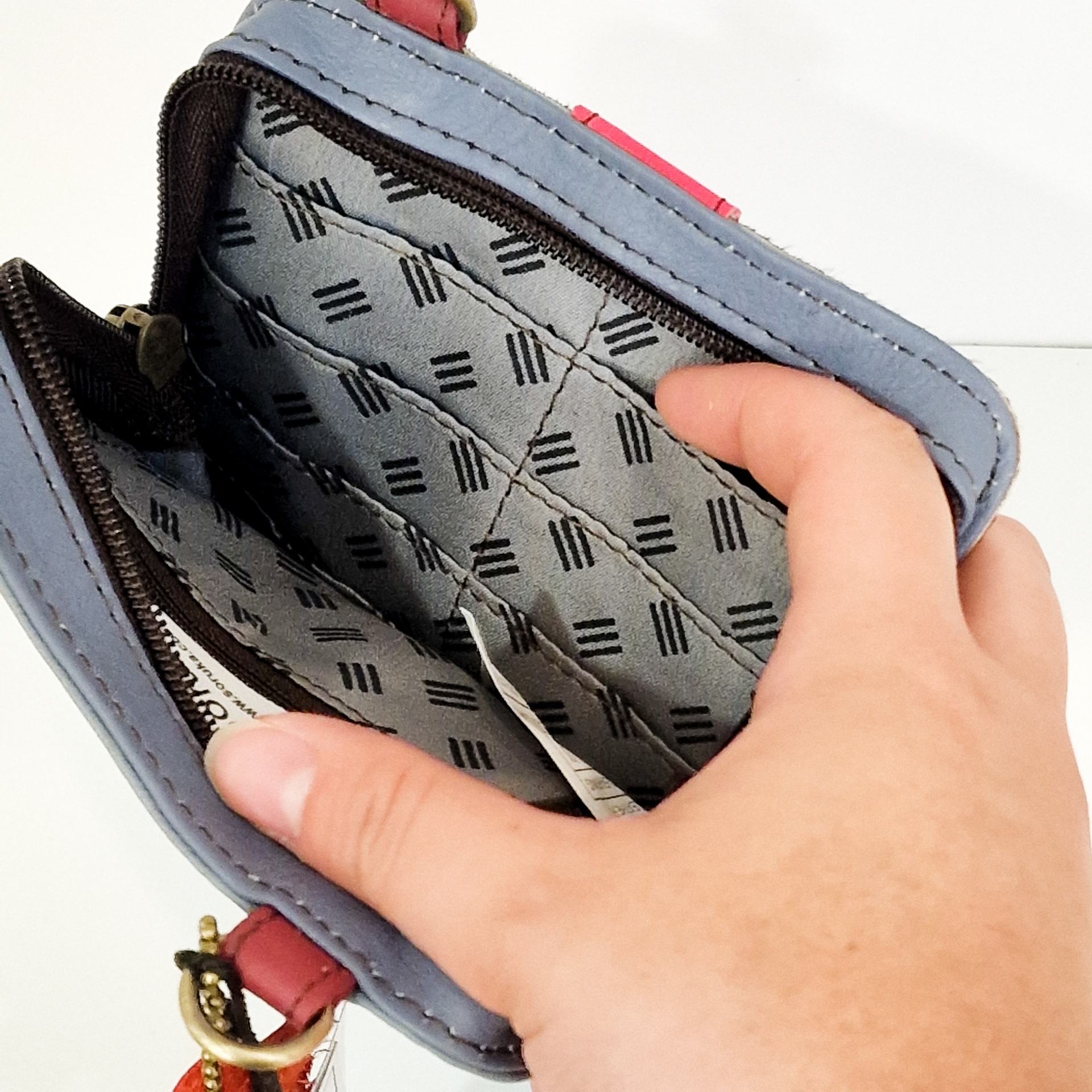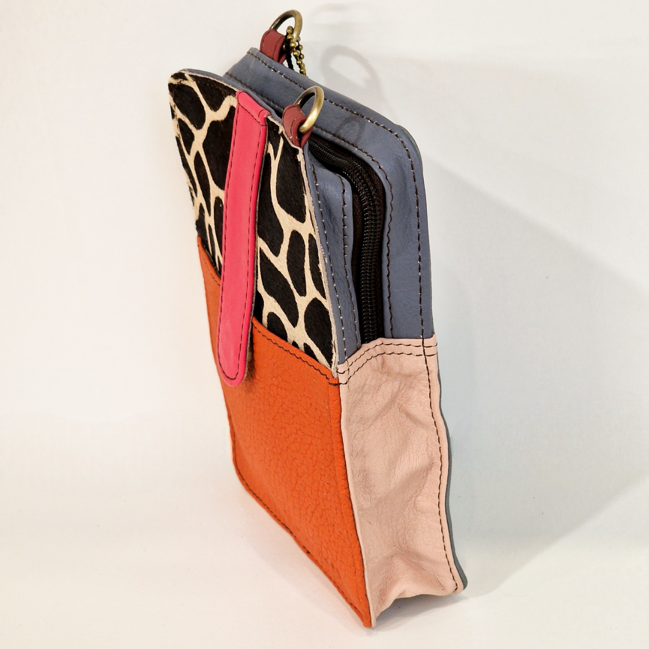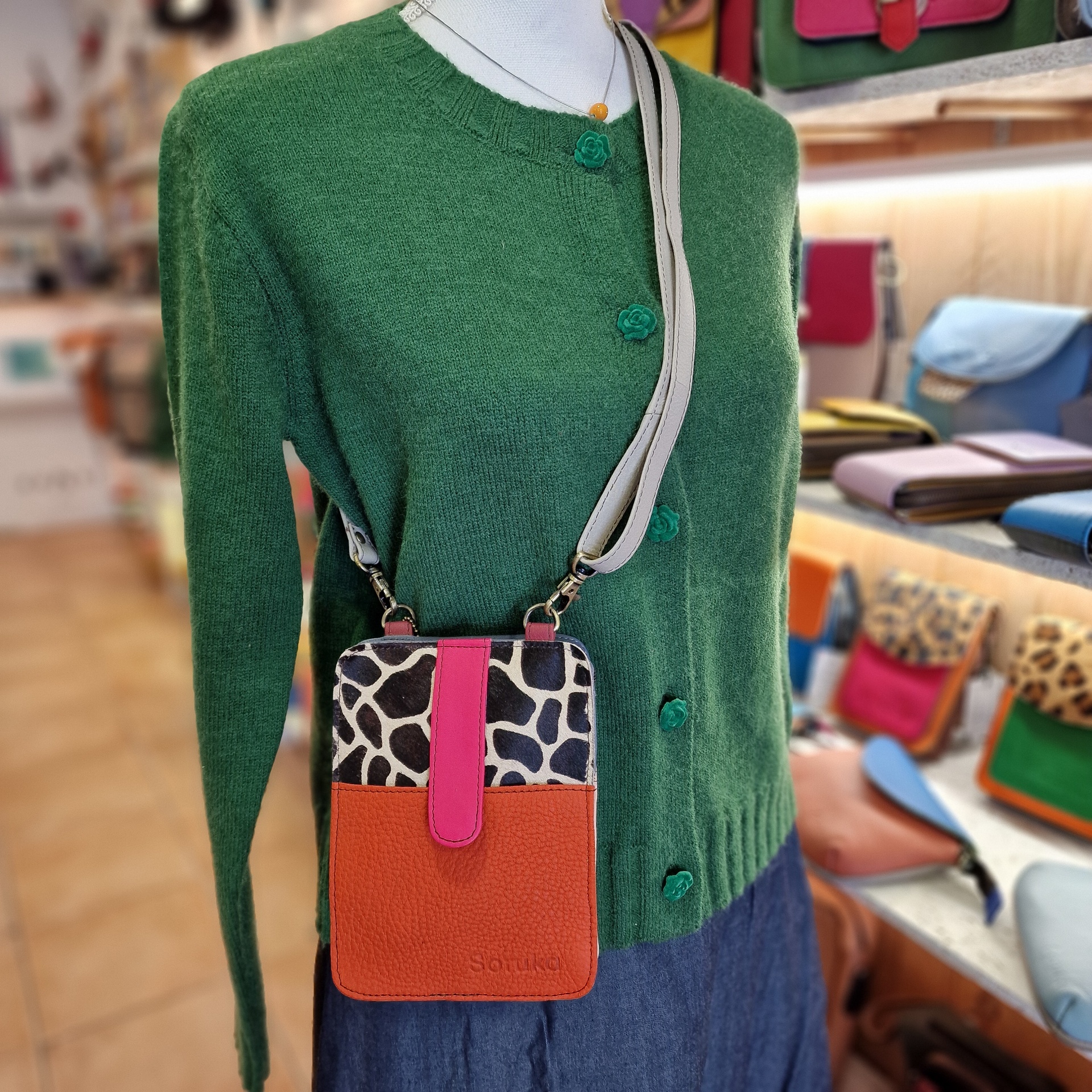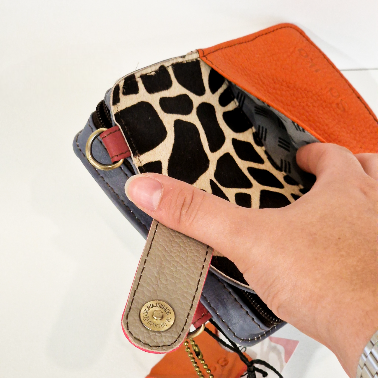 Bolsa 100% couro reciclado, inclui uma alça de couro ajustável e extensível.