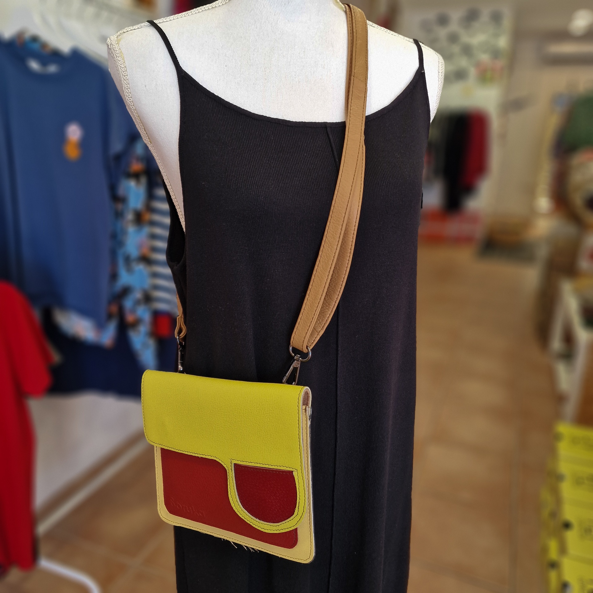 • Carteira em couro amarelo, castanho e vermelho com relevo BOLINO