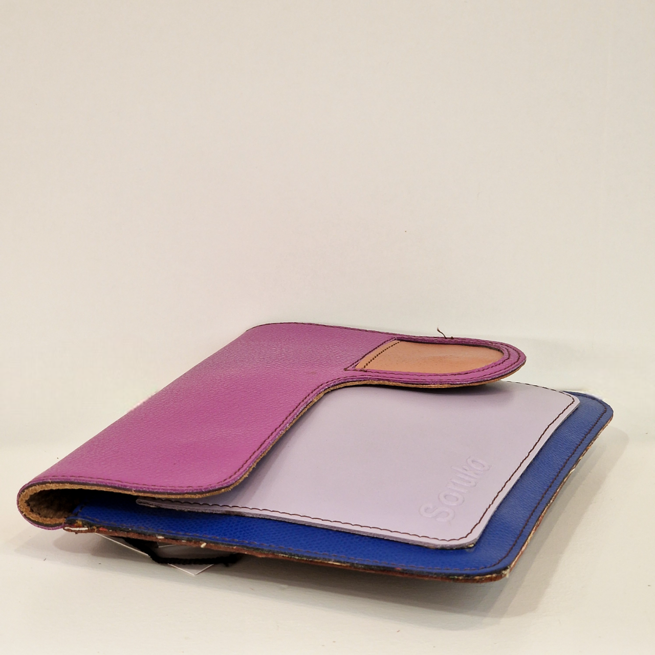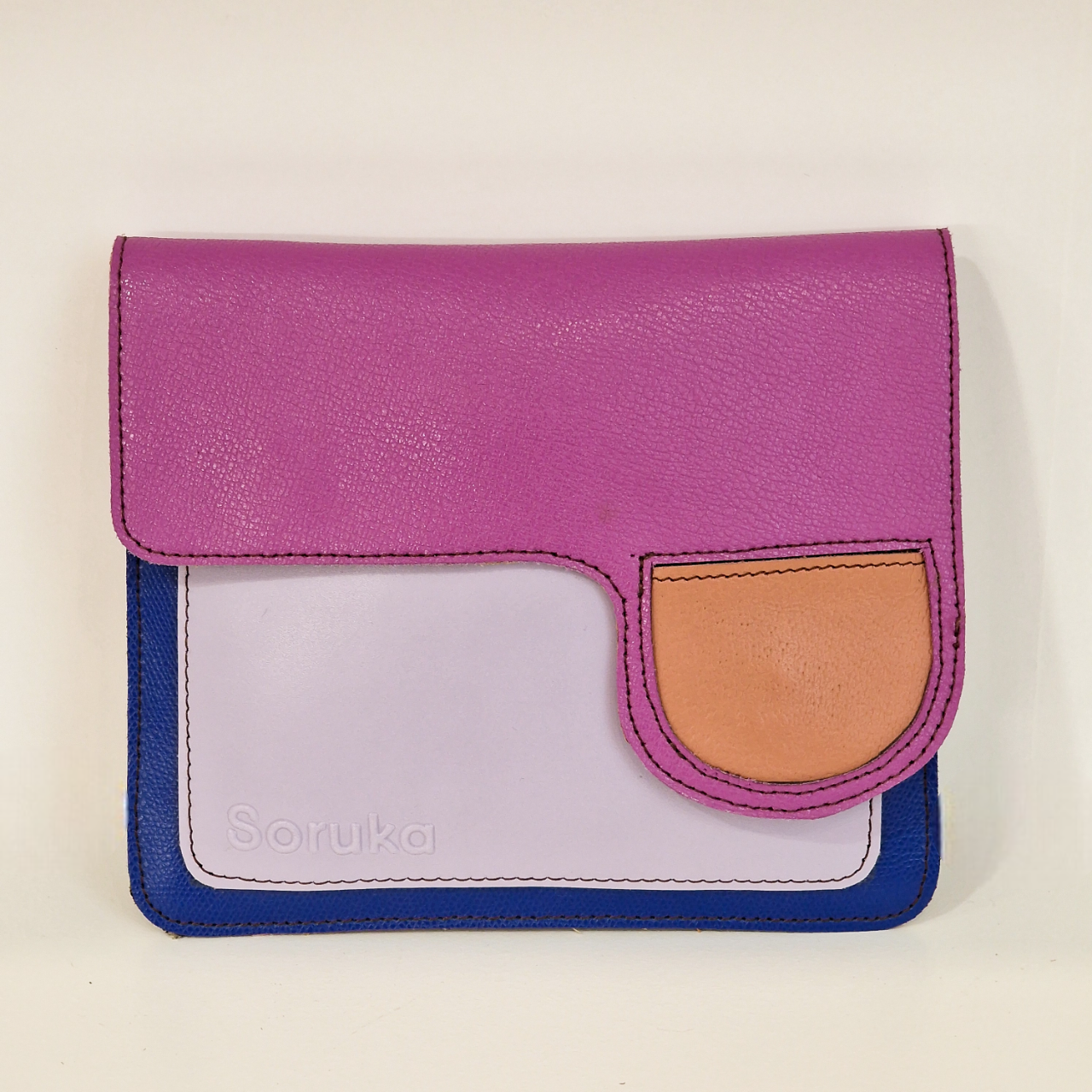 • Carteira pequena colorida em couro com gravação Soruka