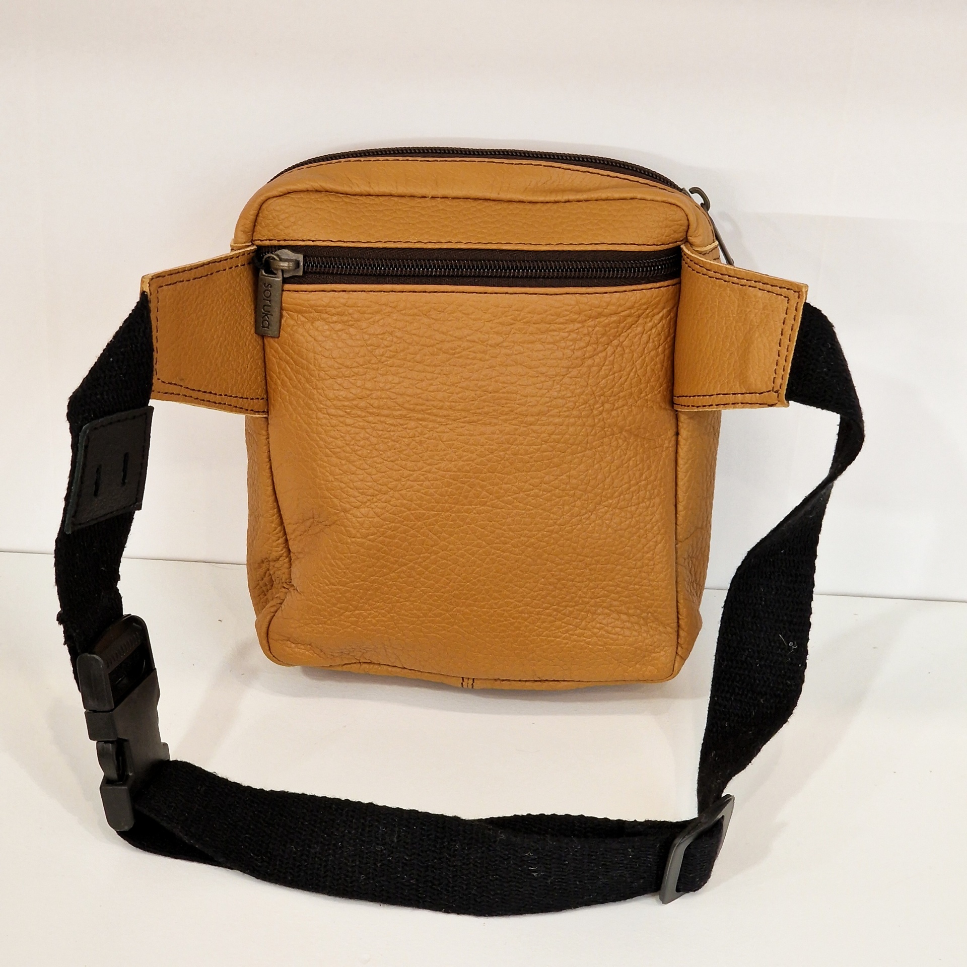 Bolsa de Cintura 100% couro reciclado, com cinto de couro ajustável e extensível.