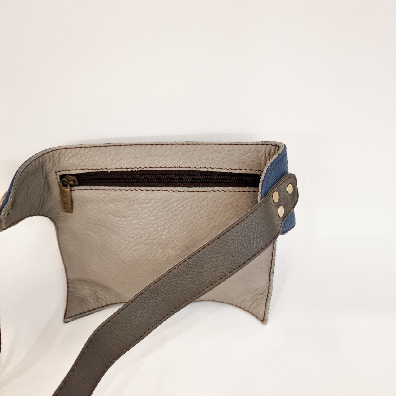 Bolsa de Cintura 100% couro reciclado, com cinto de couro ajustável e extensível.