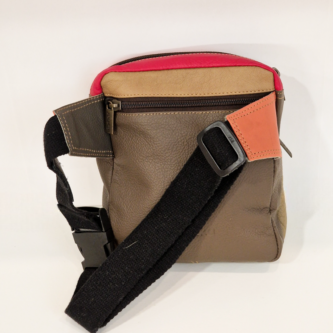 Bolsa de Cintura 100% couro reciclado, com cinto de couro ajustável e extensível.