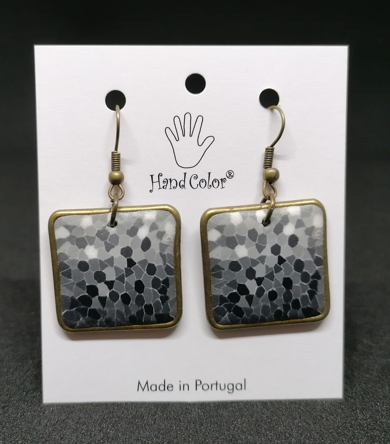 Brincos Gaudí - Cinzento & Preto 12,00 € Desconto de %. IVA incluído. Partilhar Comprar Contactar Características Cores da argila: Várias tonalidades de cinzento e preto Metal: Latão Dimensão: 25mm x 25mm Antialérgico Peso: 8,5gr (4,25gr por unidade) aproximadamente As cores dos produtos poderão sofrer ligeiras alterações devido à reprodução fotográfica. Tags pretobrincosmade in portuguallatãocinzentoartesanato Características