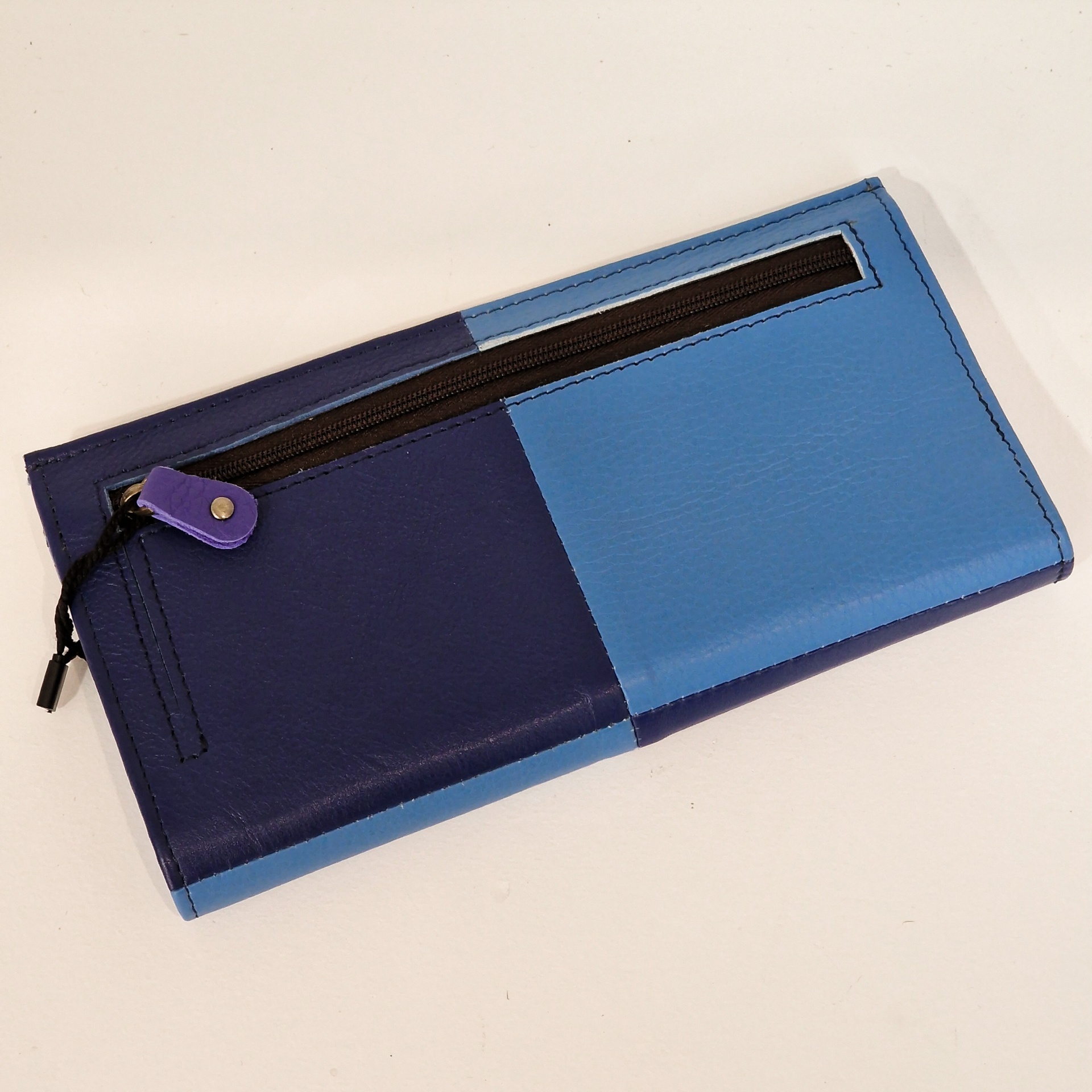 • Carteira longa azul com fecho de correr preto