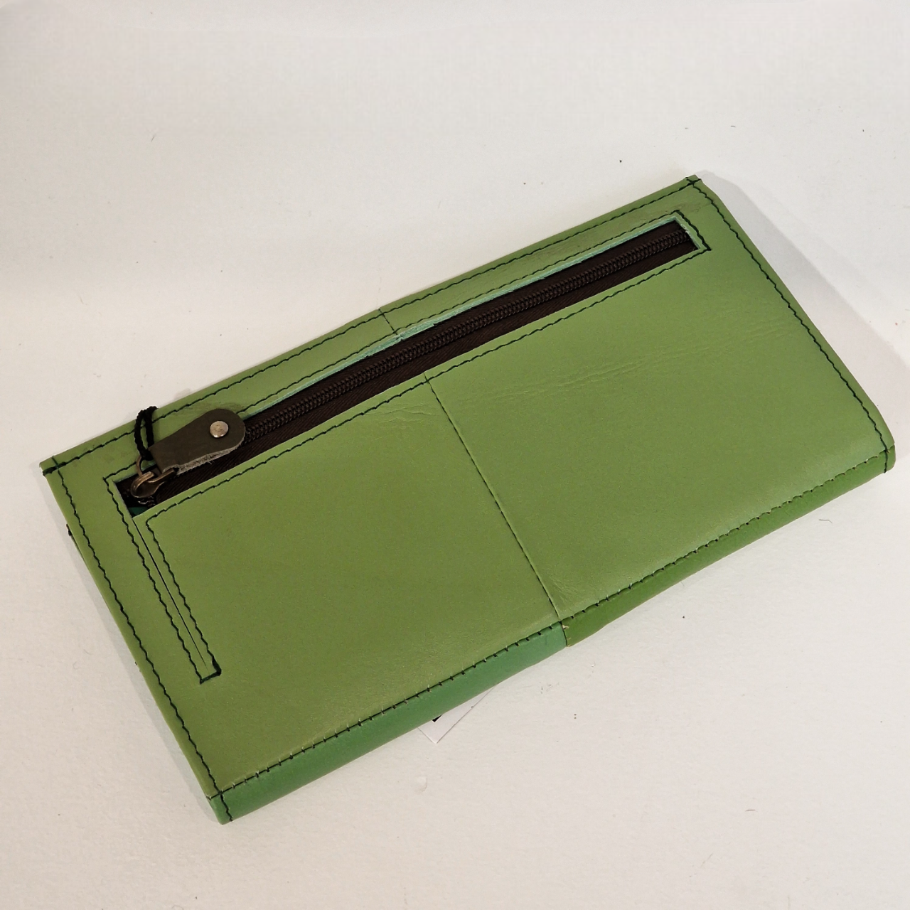 • Carteira verde clara com fecho zip castanho