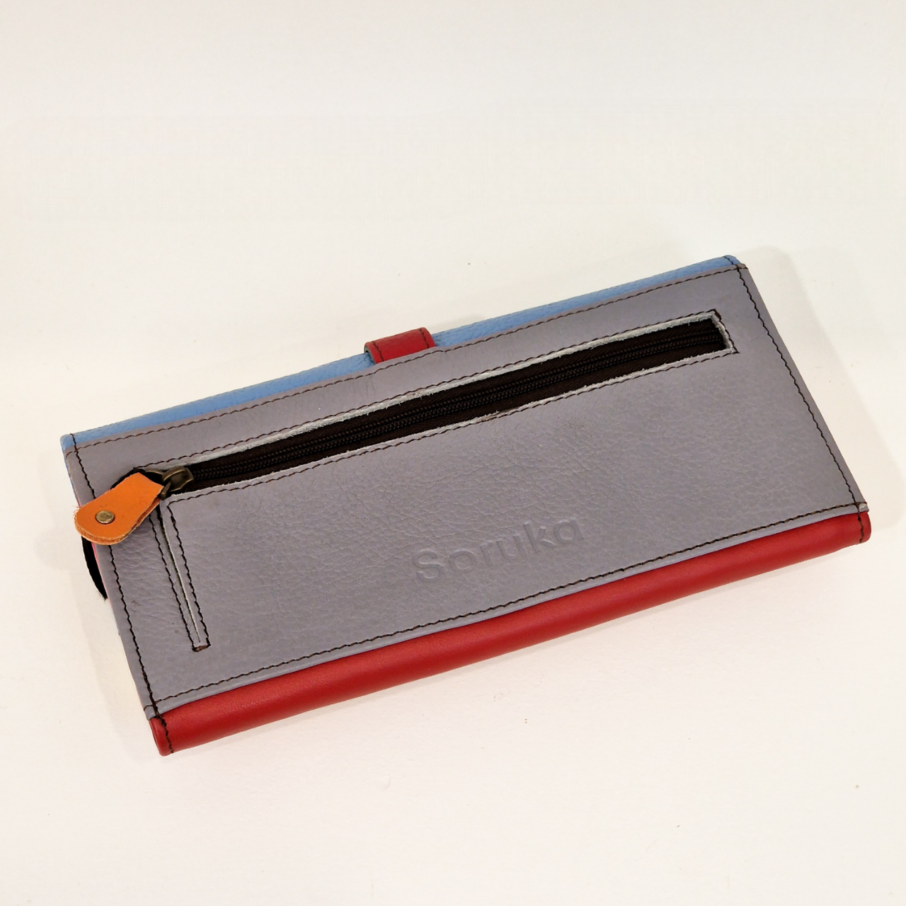 • Carteira de couro multicolorida com fecho zip e gravação Sonuka
