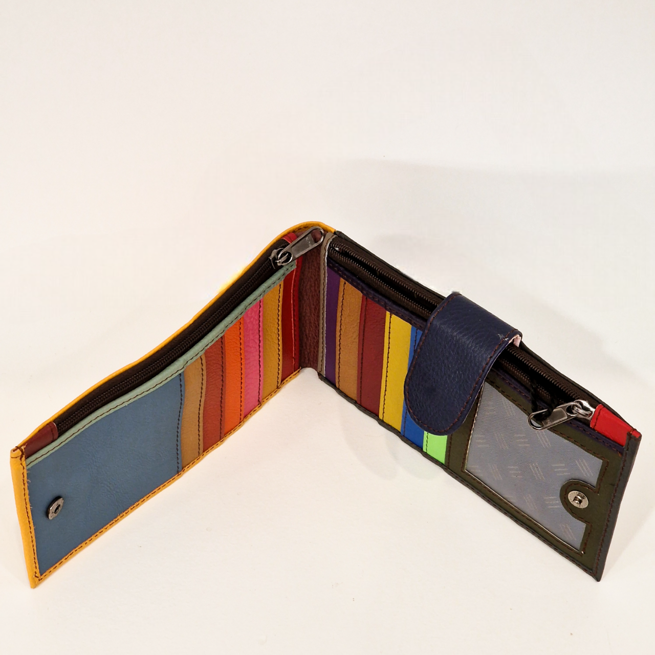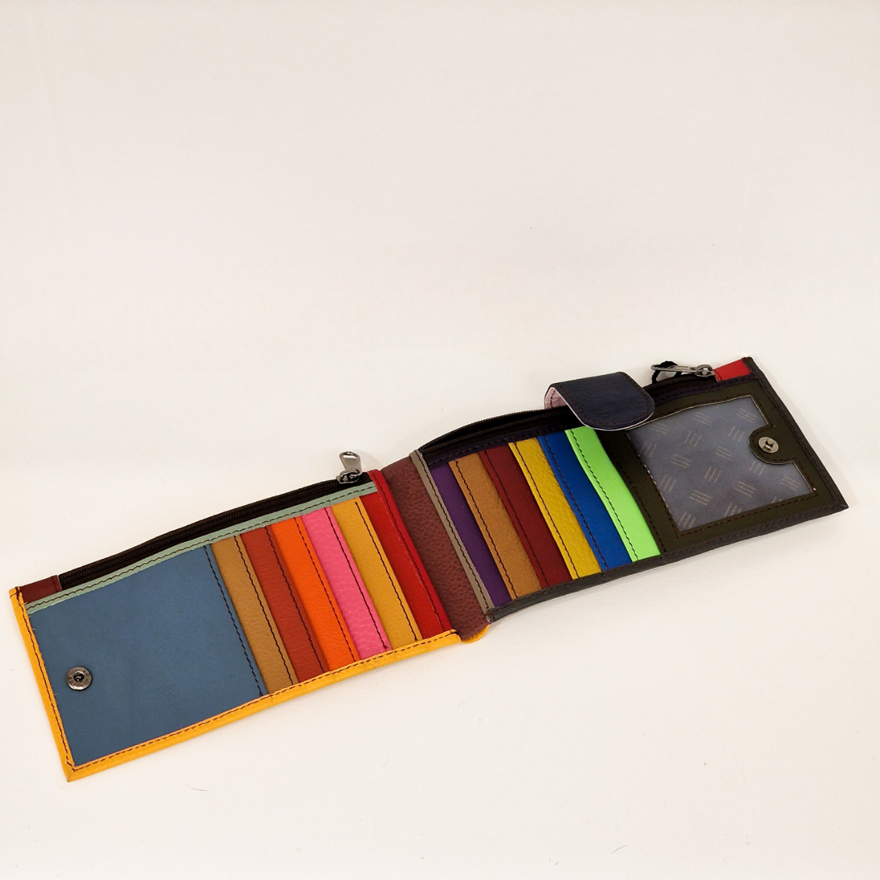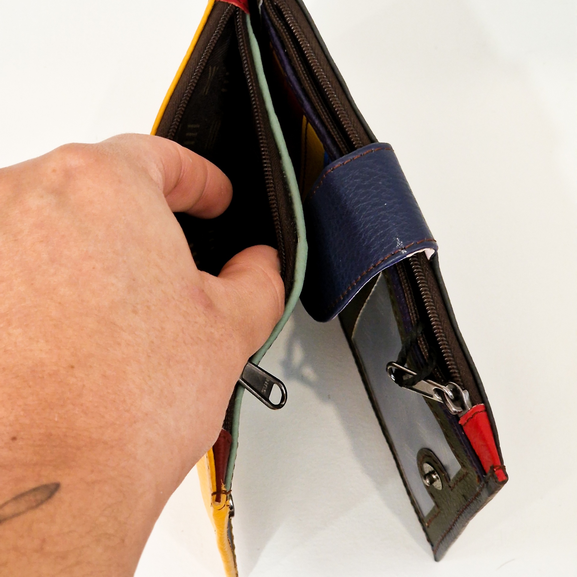 Carteira com compartimento para cartões, moedas e notas. Botão de fecho, 100% couro reciclado.