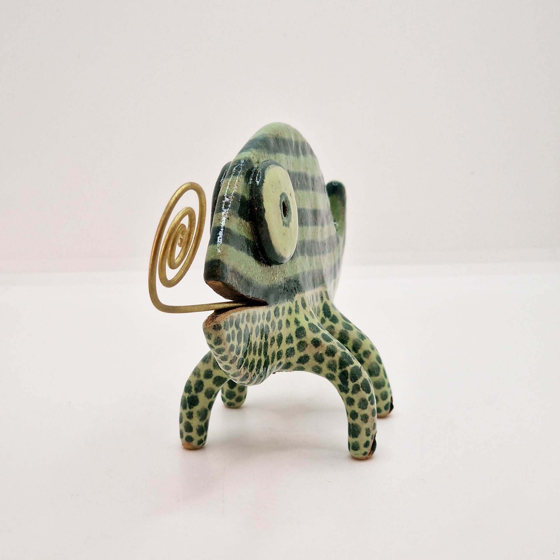 Camaleão 99,00 € Desconto de %. IVA incluído. Partilhar Comprar Contactar Camaleão feito em cerâmica. Peça única. Dimensões: Altura / Largura: 11 x 21cm As cores dos produtos poderão sofrer ligeiras alterações devido à reprodução fotográfica. Tags decoraçãoceramicapeça de autorCamaleão