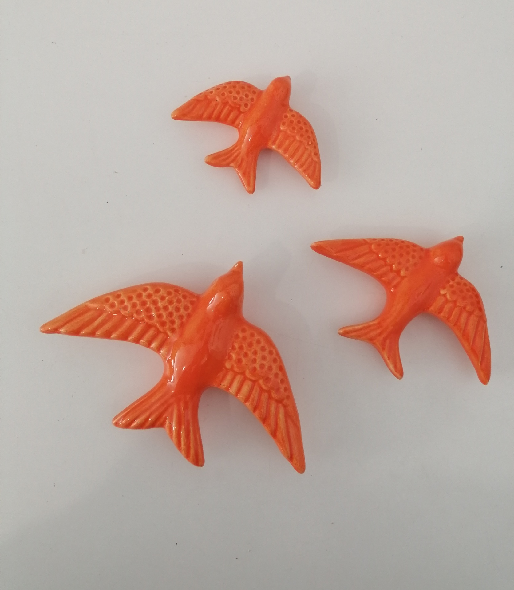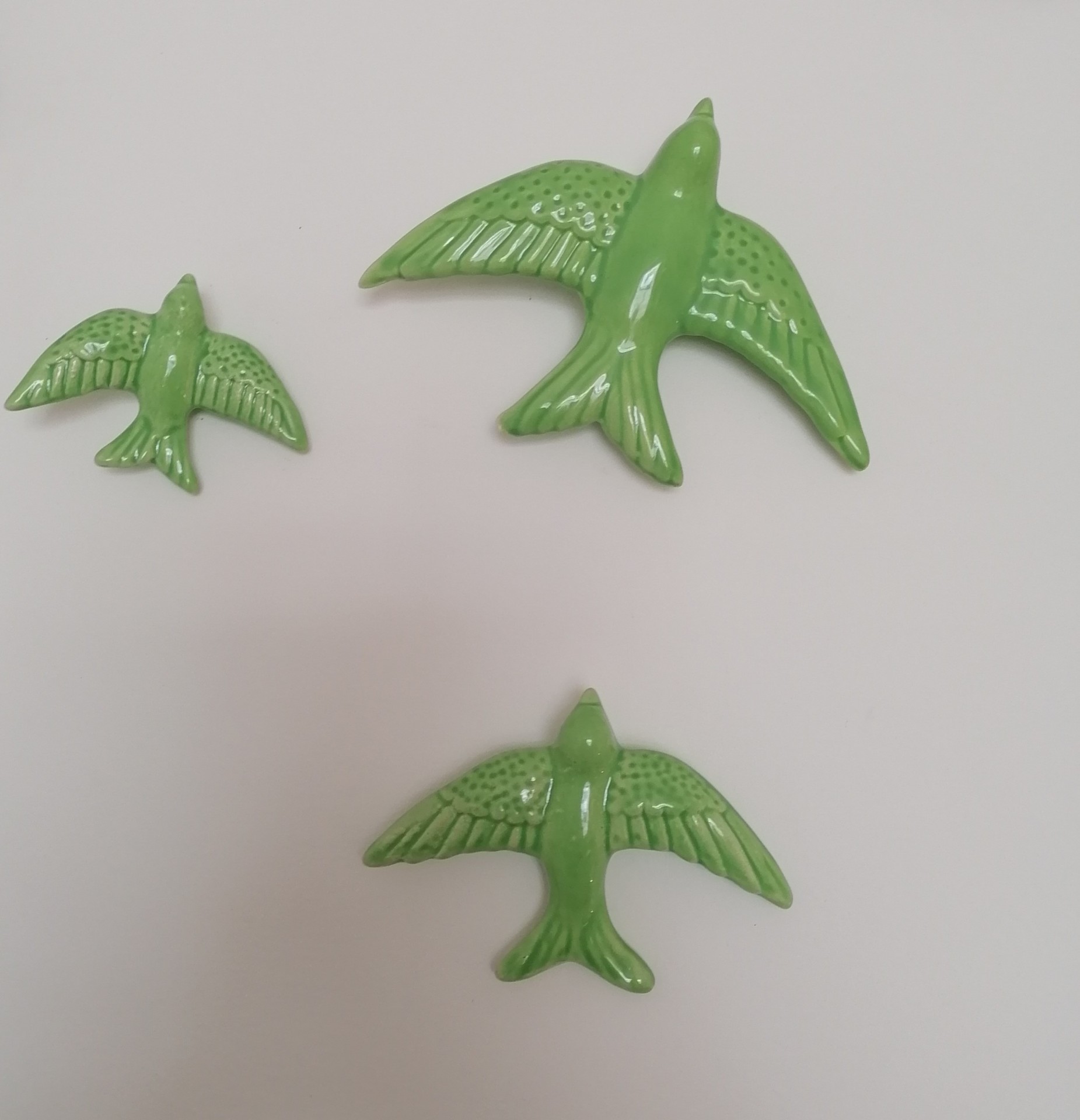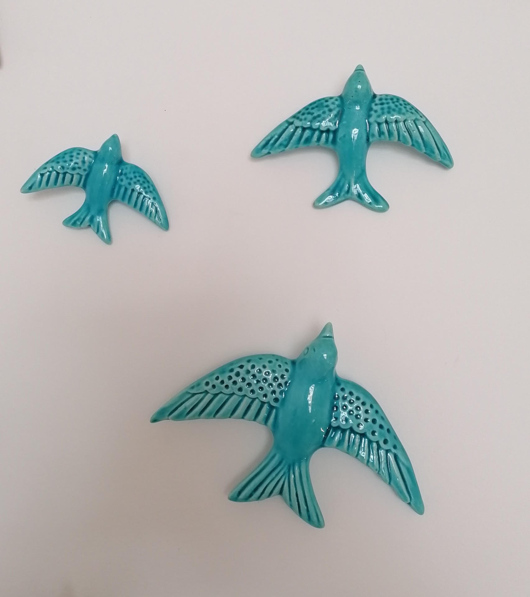 Conjunto de Três Andorinhas 20,00 € Desconto de %. IVA incluído. Partilhar Escolha a cor: Preto Azul Escuro Azul Turquesa Verde Caldas Verde Amarelo Vermelho Rosa Laranja Castanho Comprar Contactar Conjunto de 3 Andorinhas com três tamanhos diferentes para pendurar da parede. Existem várias cores (Preto, 3 tonalidades de Azul, Amarelo, Laranja, Vermelho, Rosa, 2 tonalidades de Verde). Dimensões: Andorinha pequena: 7cm x 9,5cm Andorinha média: 8,5cm x 12cm Andorinha grande: 12cm x 16cm As cores dos produtos poderão sofrer ligeiras alterações devido à reprodução fotográfica. Tags andorinhasandorinhas de ceramicapassarosbirdoiseau