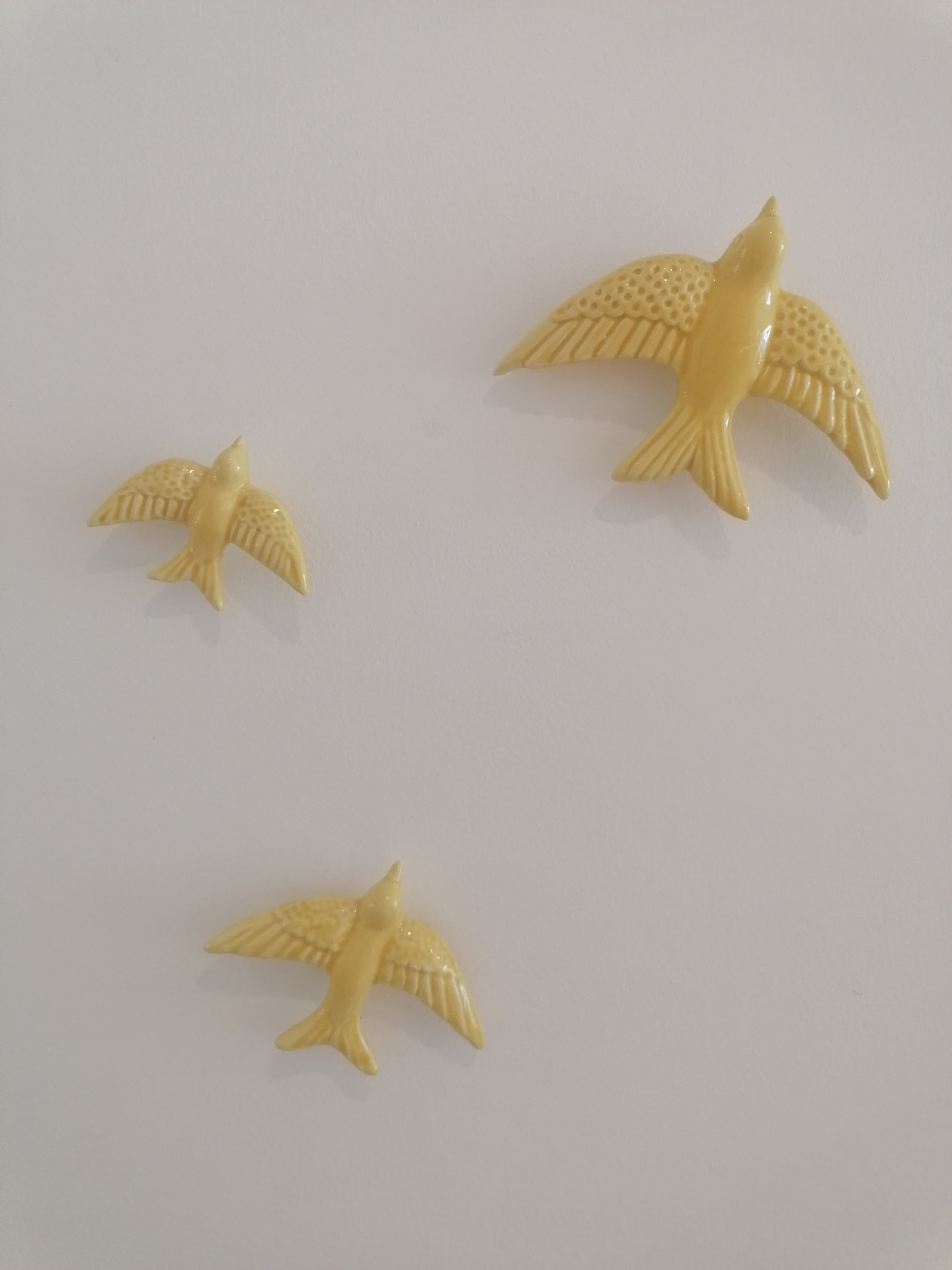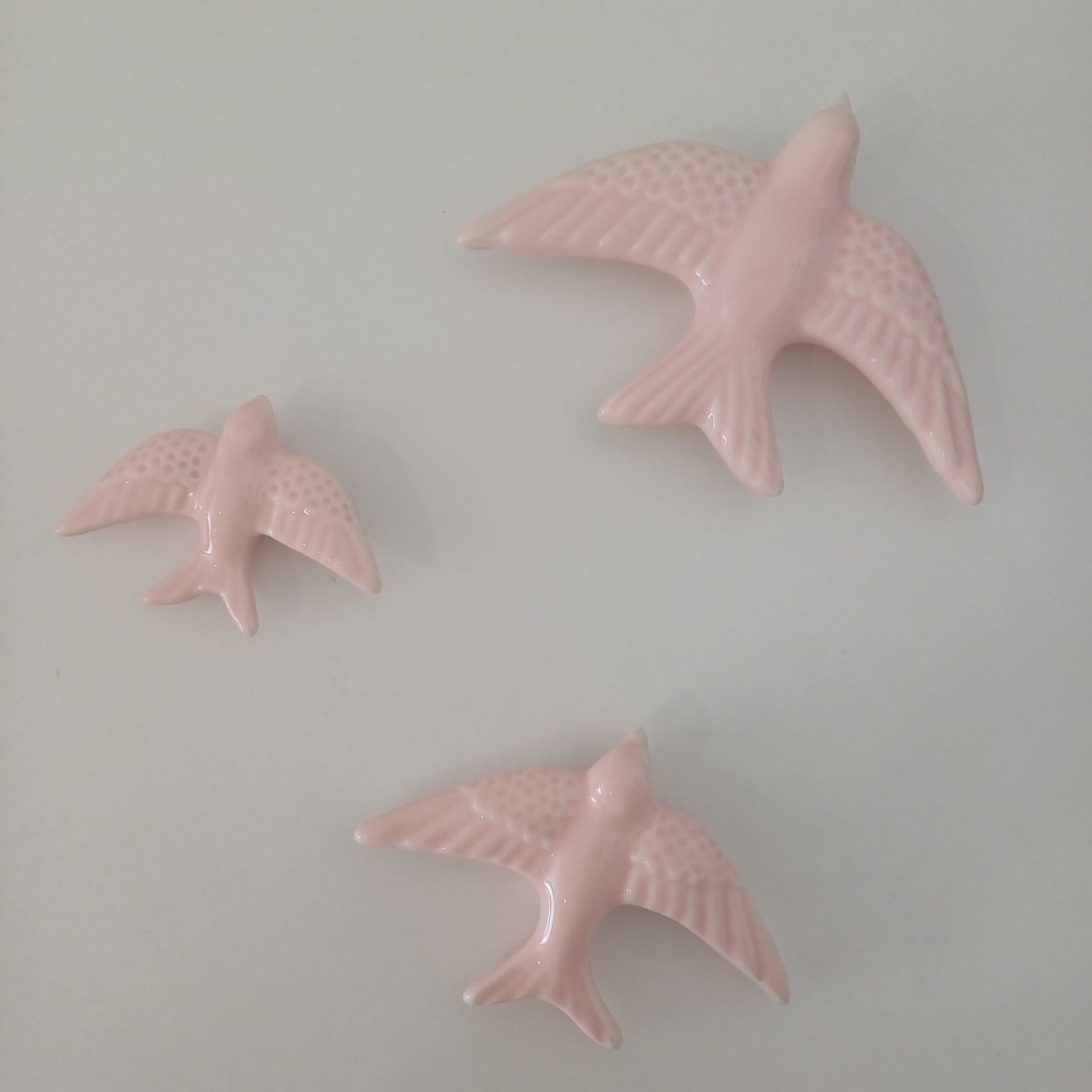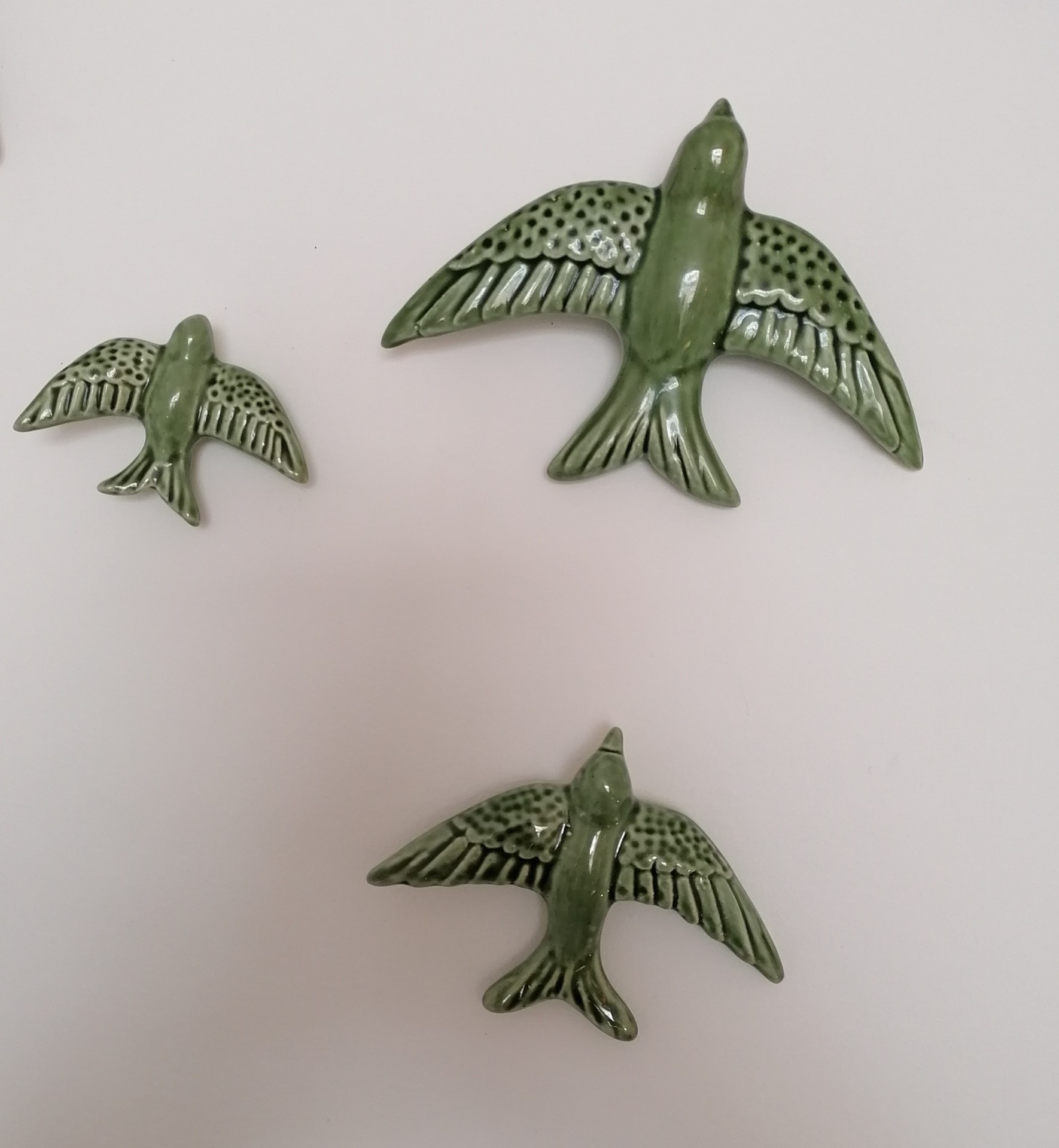 Conjunto de Três Andorinhas 20,00 € Desconto de %. IVA incluído. Partilhar Escolha a cor: Preto Azul Escuro Azul Turquesa Verde Caldas Verde Amarelo Vermelho Rosa Laranja Castanho Comprar Contactar Conjunto de 3 Andorinhas com três tamanhos diferentes para pendurar da parede. Existem várias cores (Preto, 3 tonalidades de Azul, Amarelo, Laranja, Vermelho, Rosa, 2 tonalidades de Verde). Dimensões: Andorinha pequena: 7cm x 9,5cm Andorinha média: 8,5cm x 12cm Andorinha grande: 12cm x 16cm As cores dos produtos poderão sofrer ligeiras alterações devido à reprodução fotográfica. Tags andorinhasandorinhas de ceramicapassarosbirdoiseau