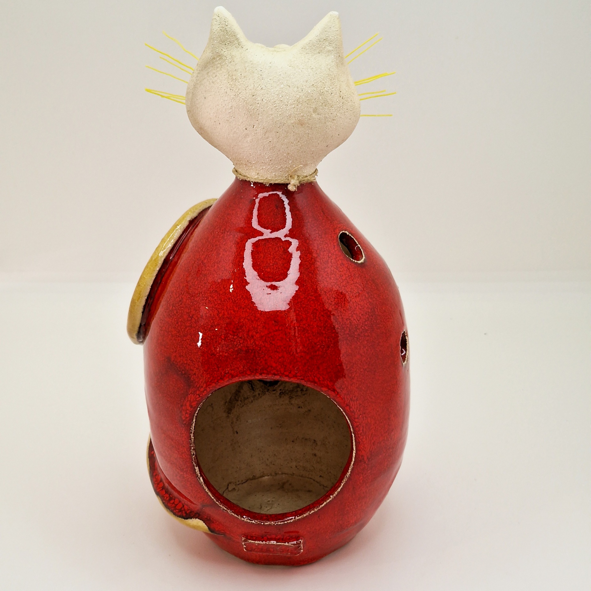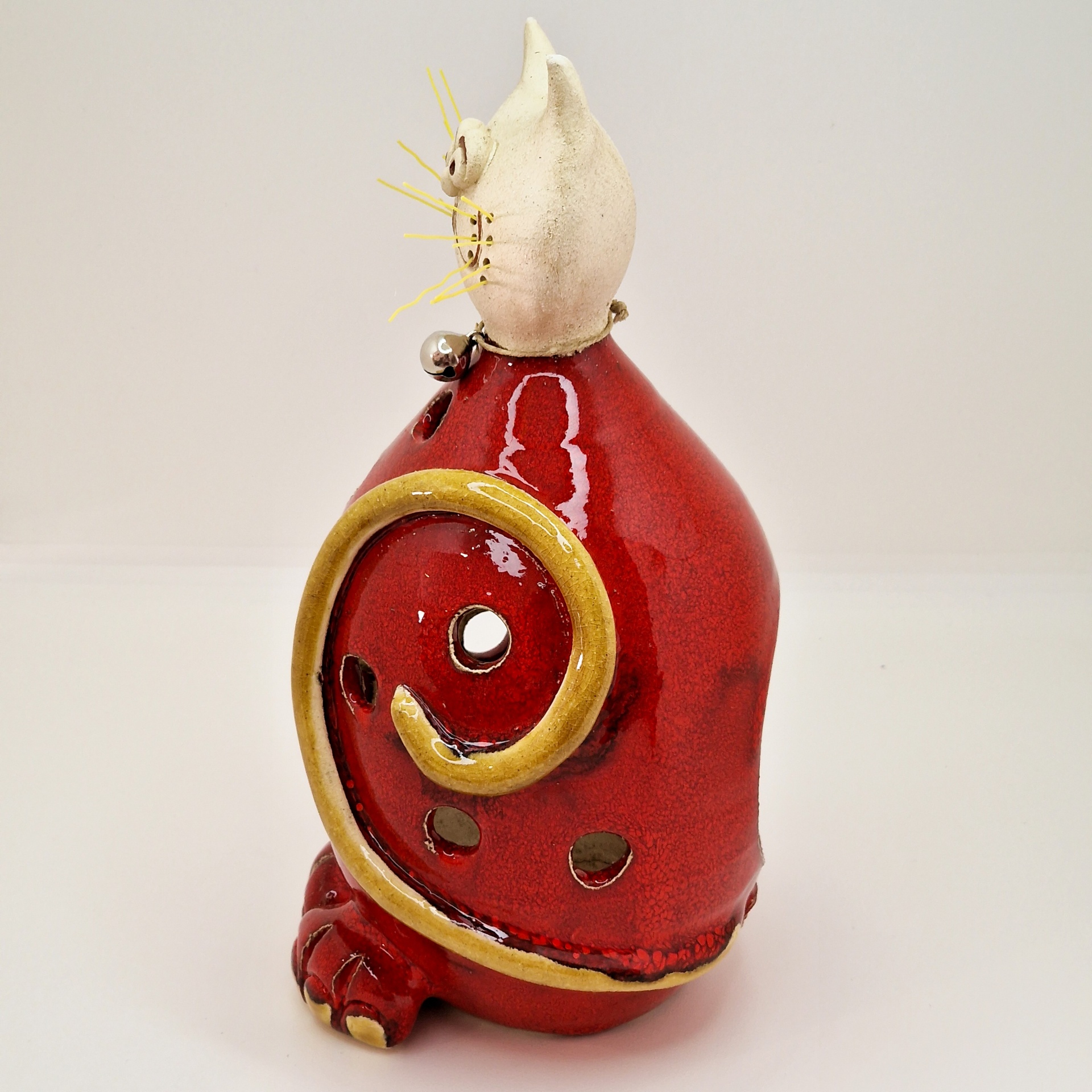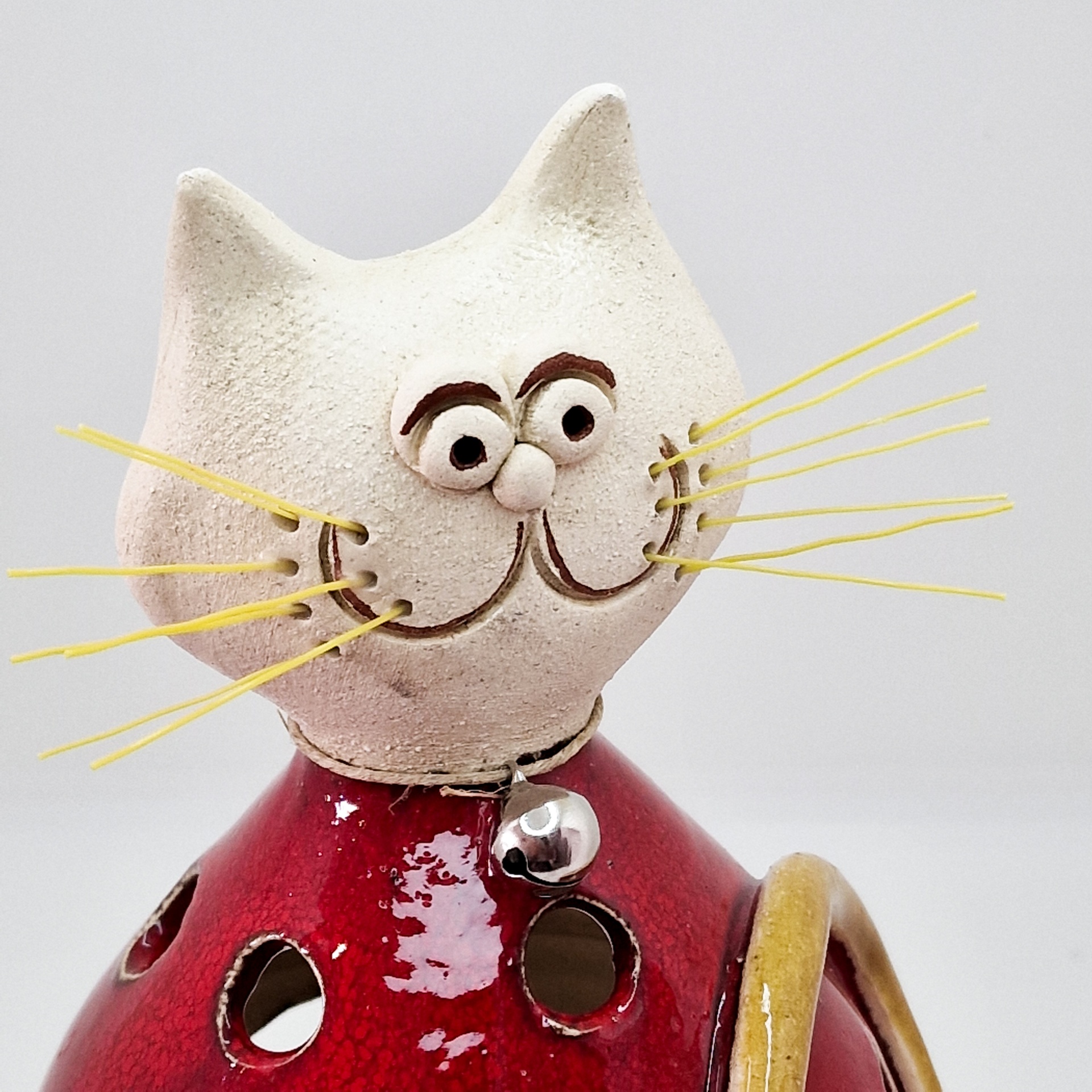 Gato 67,50 € Desconto de %. IVA incluído. Partilhar Comprar Contactar Gato feito em cerâmica grés e vidrado, com mini colar de sino.Permite colocar uma vela no interior da escultura e iluminar a peça. Peça única. Dimensões: Altura/ largura: 24x16cm As cores dos produtos poderão sofrer ligeiras alterações devido à reprodução fotográfica. Tags decoraçãoceramicapeça de autorgatocatChaton