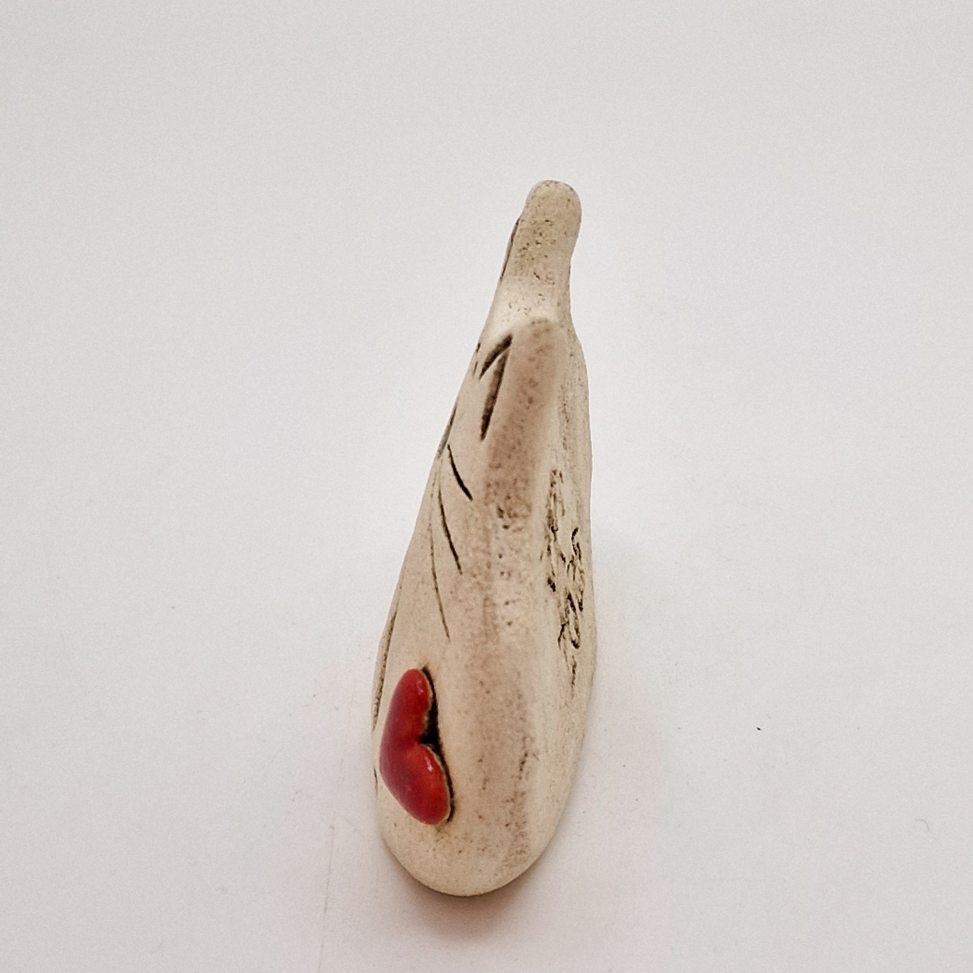• Estatueta decorativa branca com coração vermelho em relevo