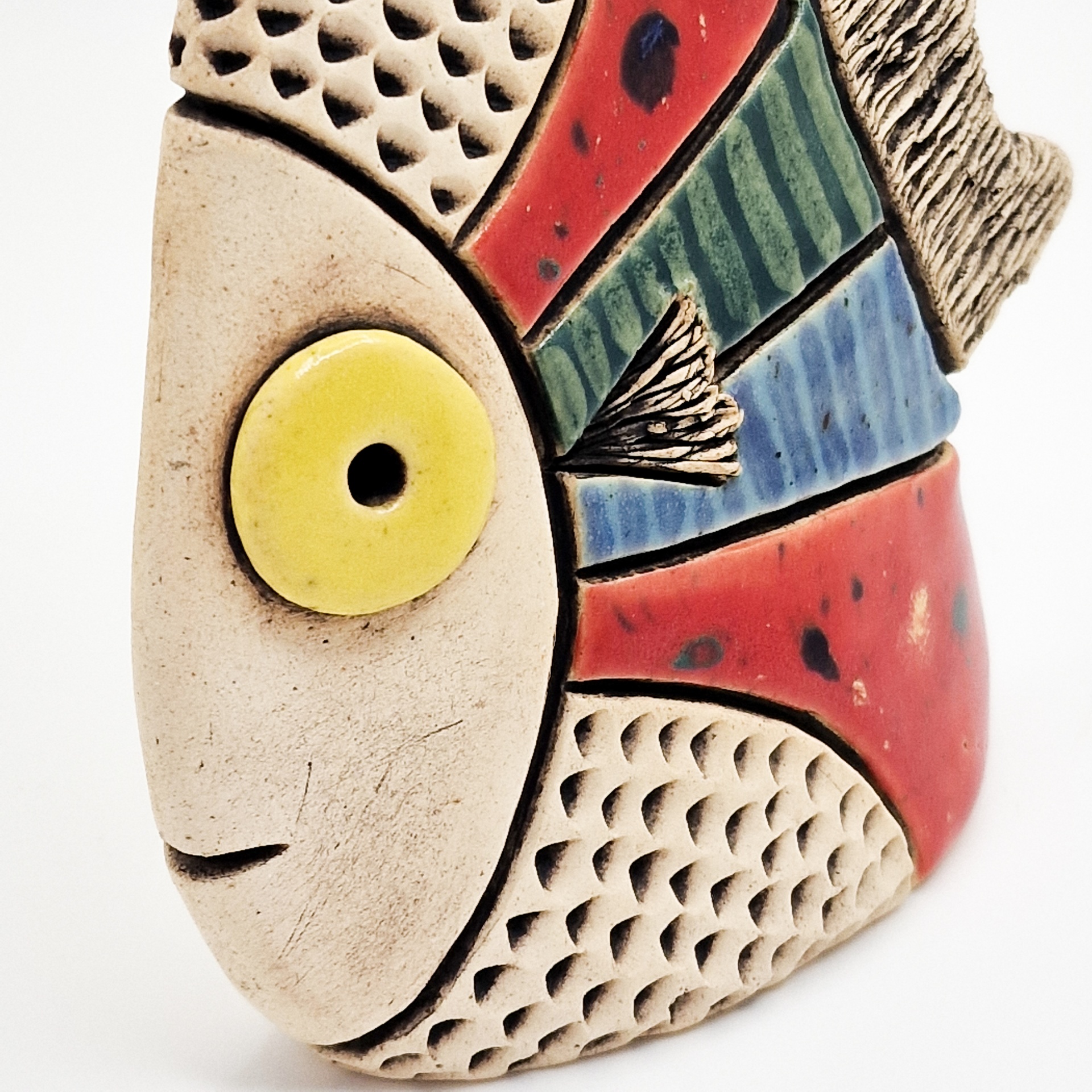Peixe 54,50 € Desconto de %. IVA incluído. Partilhar Comprar Contactar Peixe feito em cerâmica grés. Peça única. Dimensões: Altura/ largura: 12cm x9cm As cores dos produtos poderão sofrer ligeiras alterações devido à reprodução fotográfica. Tags decoraçãoceramicapeça de autorpeixepoissonfish