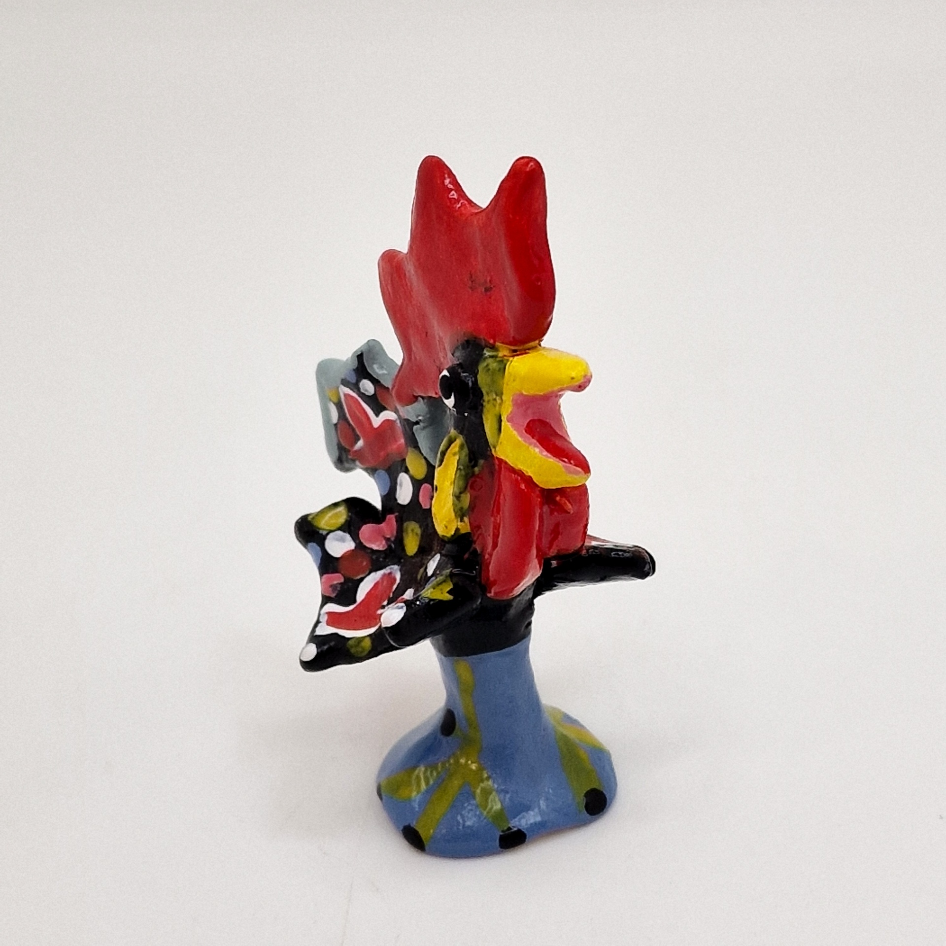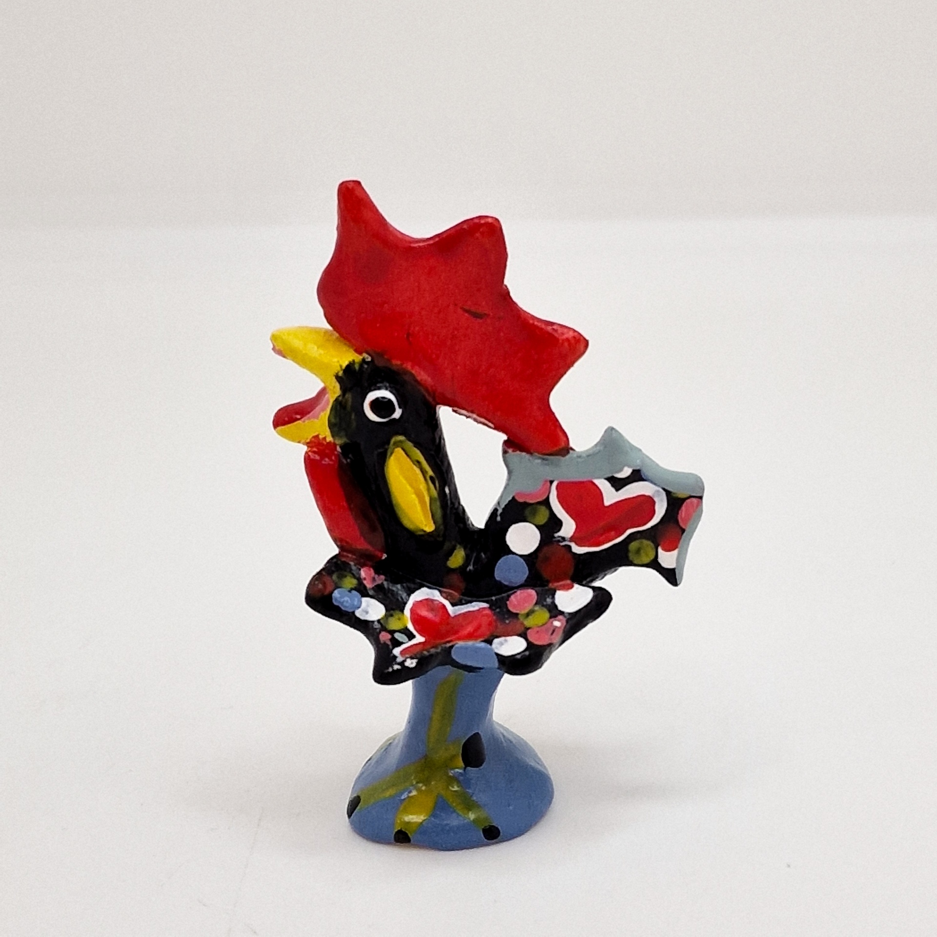 Galo - Figurado de Barcelos 6,50 € Desconto de %. IVA incluído. Partilhar O produto encontra-se sem stock. Cerâmica Figurativa de Barcelos Esta é uma peça única e certificada, modelada e pintada à mão, por João Ferreira. Altura máxima: 9cm As cores dos produtos poderão sofrer ligeiras alterações devido à reprodução fotográfica. Tags barcelosceramicasantogalo