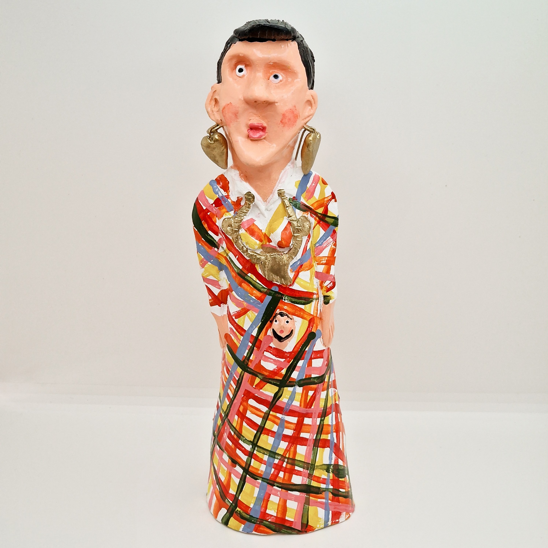 Figurado de Barcelos - Gigantone 47,50 € Desconto de %. IVA incluído. Partilhar Comprar Contactar Cerâmica Figurativa de Barcelos Esta é uma peça única e certificada, modelada e pintada à mão, por João Ferreira. Altura máxima: 27 cmDiametro: 8cm As cores dos produtos poderão sofrer ligeiras alterações devido à reprodução fotográfica. Tags barcelosceramicafigurado de barcelosdecoração