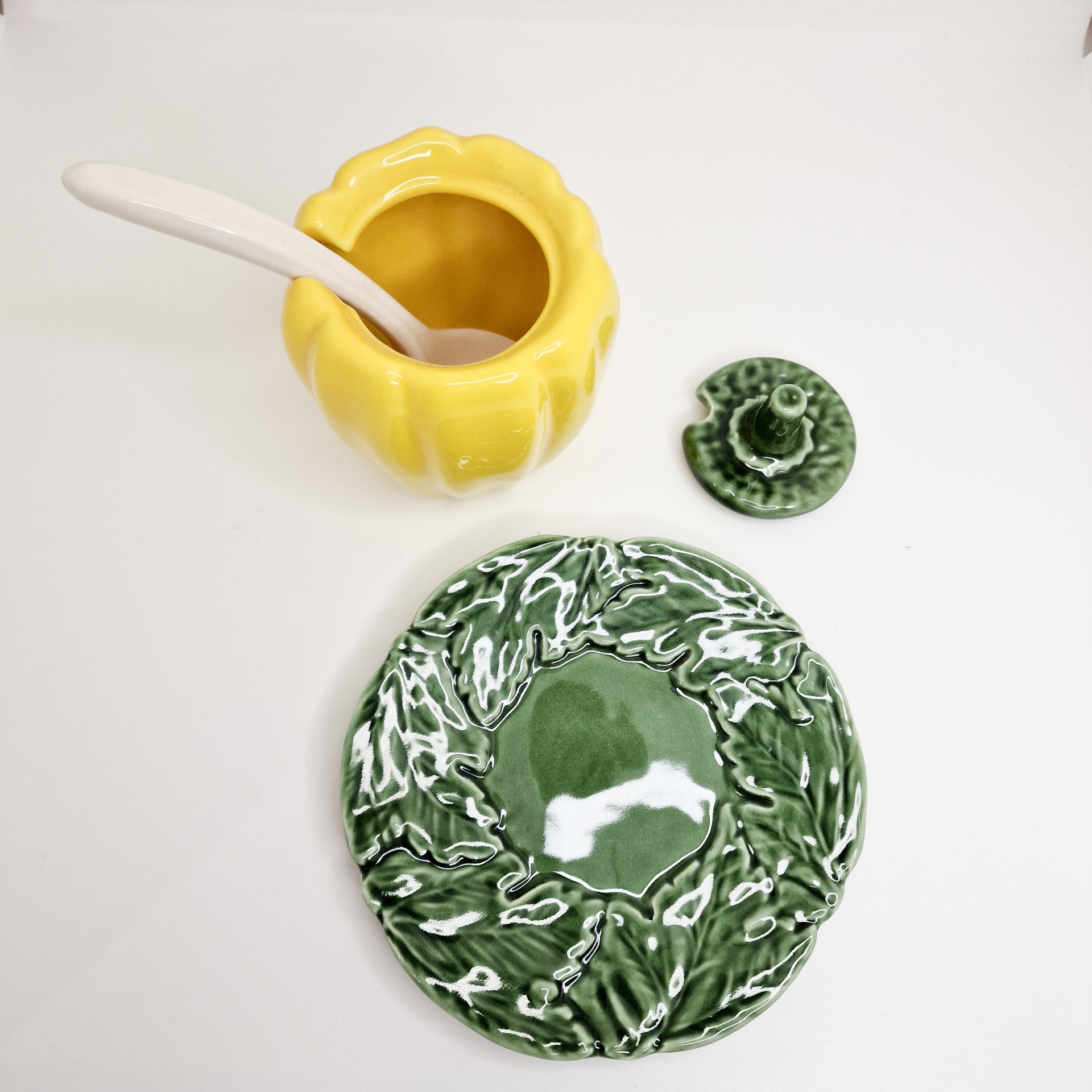 Açucareiro - Pimento 18,00 € Desconto de %. IVA incluído. Partilhar Comprar Contactar Peças em cerâmica vidrada com representação um Pimento. Sendo esta uma peça artesanal e única, poderá receber uma peça com ligeiras diferenças. Açucareiro (recipiente).Diametro: 8cmProfundidade: 7cm Prato: 14cm de diâmetro Colher14,5cm As cores dos produtos poderão sofrer ligeiras alterações devido à reprodução fotográfica. Tags ceramicavidradoartesanaldecoraçãoutilitárioacucareiropimentoamarelo Características