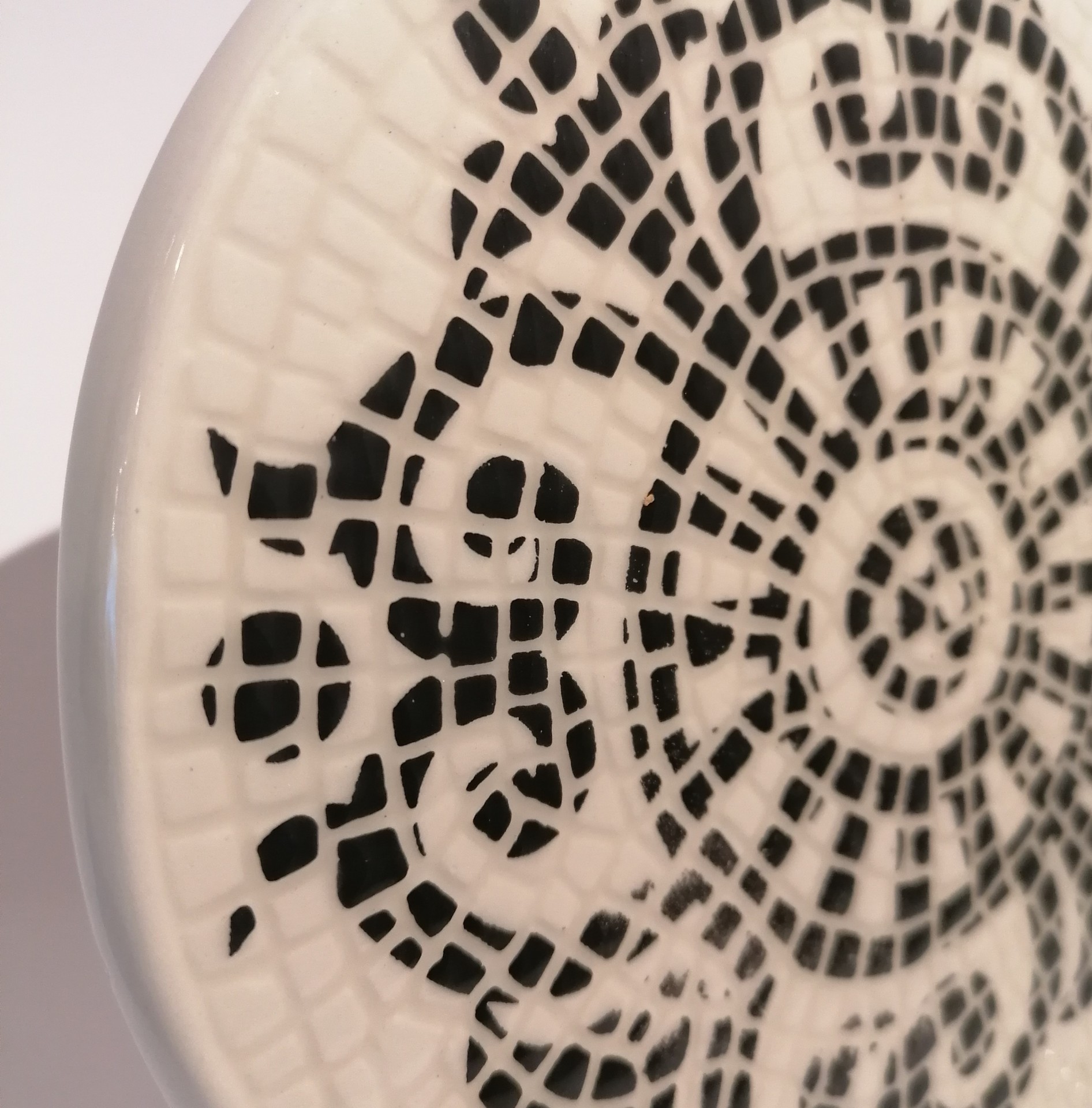 Base Calçada Portuguesa - Flor 17,50 € Desconto de %. IVA incluído. Partilhar Comprar Contactar Base feita em cerâmica com relevo, com padrão da Calçada Portuguesa com motivo floral. Utilidade: Levar à mesa e serve de base para pratos muito quentes. Diâmetro: 17cm Espessura: 1cm As cores dos produtos poderão sofrer ligeiras alterações devido à reprodução fotográfica. Tags basevidradoceramicaflorespretorelevoartesanaldecoraçãoutilitáriocalçada portuguesaDessous de platcoaster Características