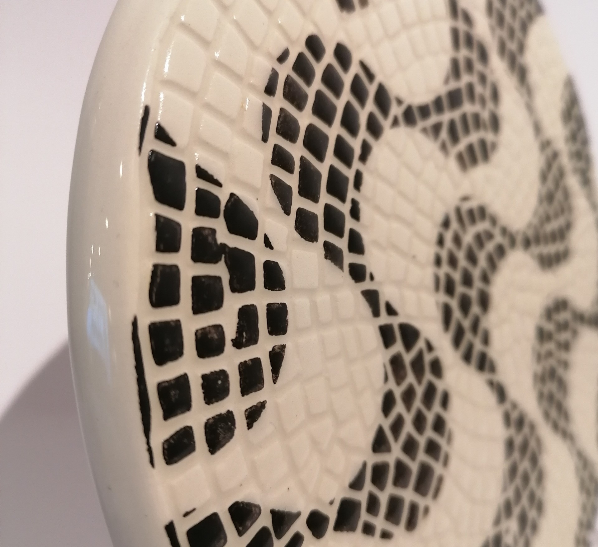 Base Calçada Portuguesa - Ondas 17,50 € Desconto de %. IVA incluído. Partilhar Comprar Contactar Base feita em cerâmica com relevo, com padrão da Calçada Portuguesa que representa as ondas do mar. Utilidade: Levar à mesa e serve de base para pratos muito quentes. Diâmetro: 17cm Espessura: 1cm As cores dos produtos poderão sofrer ligeiras alterações devido à reprodução fotográfica. Tags basevidradocerâmicaondas do marpretorelevoartesanaldecoraçãoutilitáriocalçada portuguesaDessous de verrecoasterDessous de plat Características