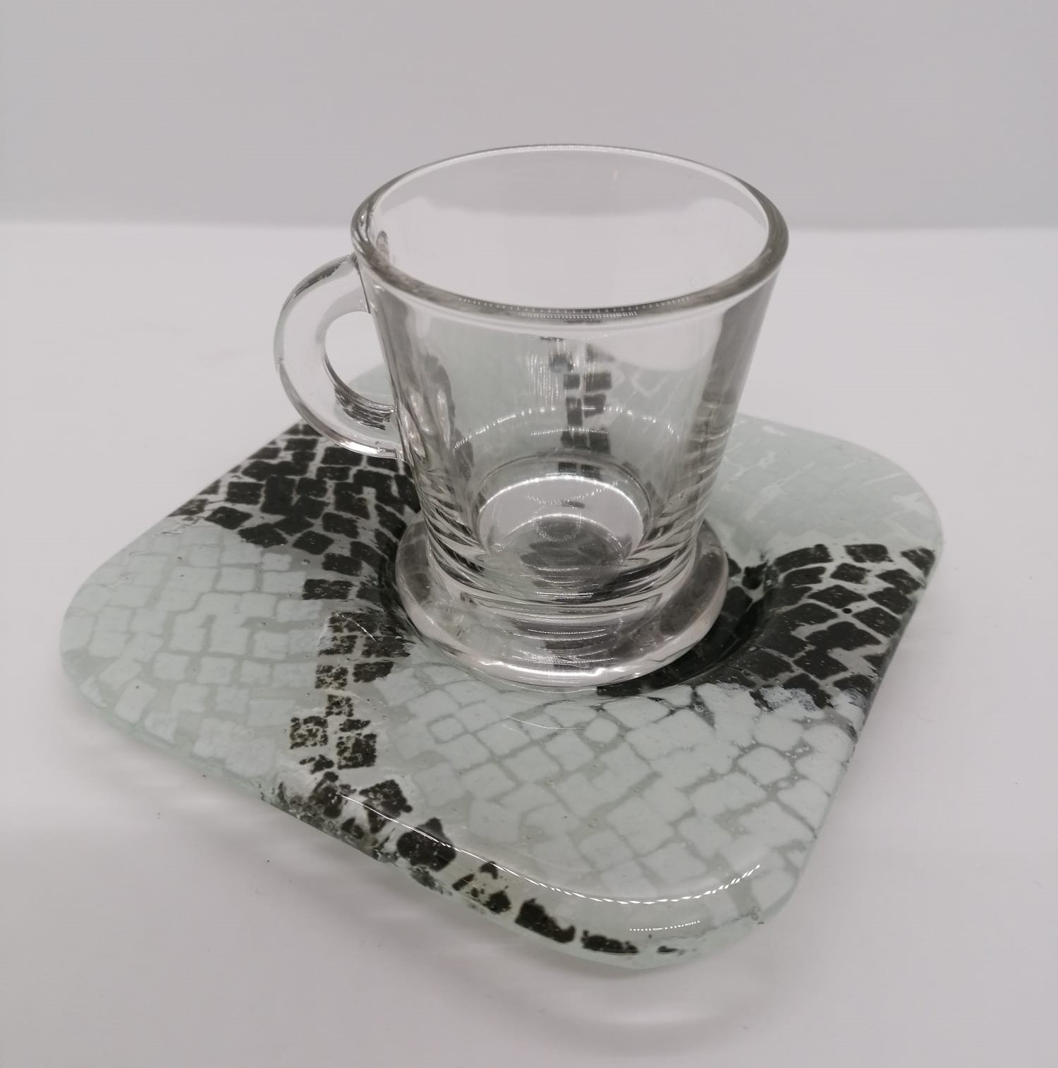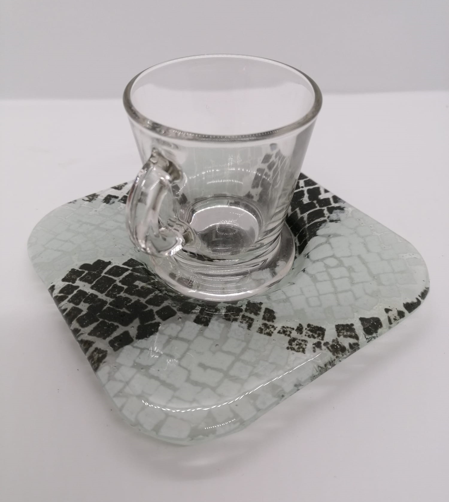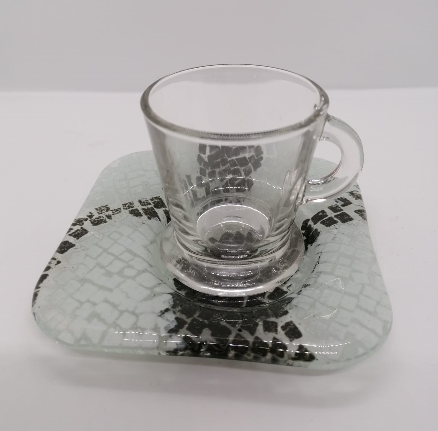 Chávena & Pires Calçada Portuguesa 14,50 € Desconto de %. IVA incluído. Partilhar Comprar Contactar Chávena de café com pires, de vidro, com decoração da calçada portuguesa. Pires: 12 x 12cm As cores dos produtos poderão sofrer ligeiras alterações devido à reprodução fotográfica. Tags utilitáriobrancopretocalçada portuguesacerâmicaartesanalvidrocaféchávenapirestasseTeacup