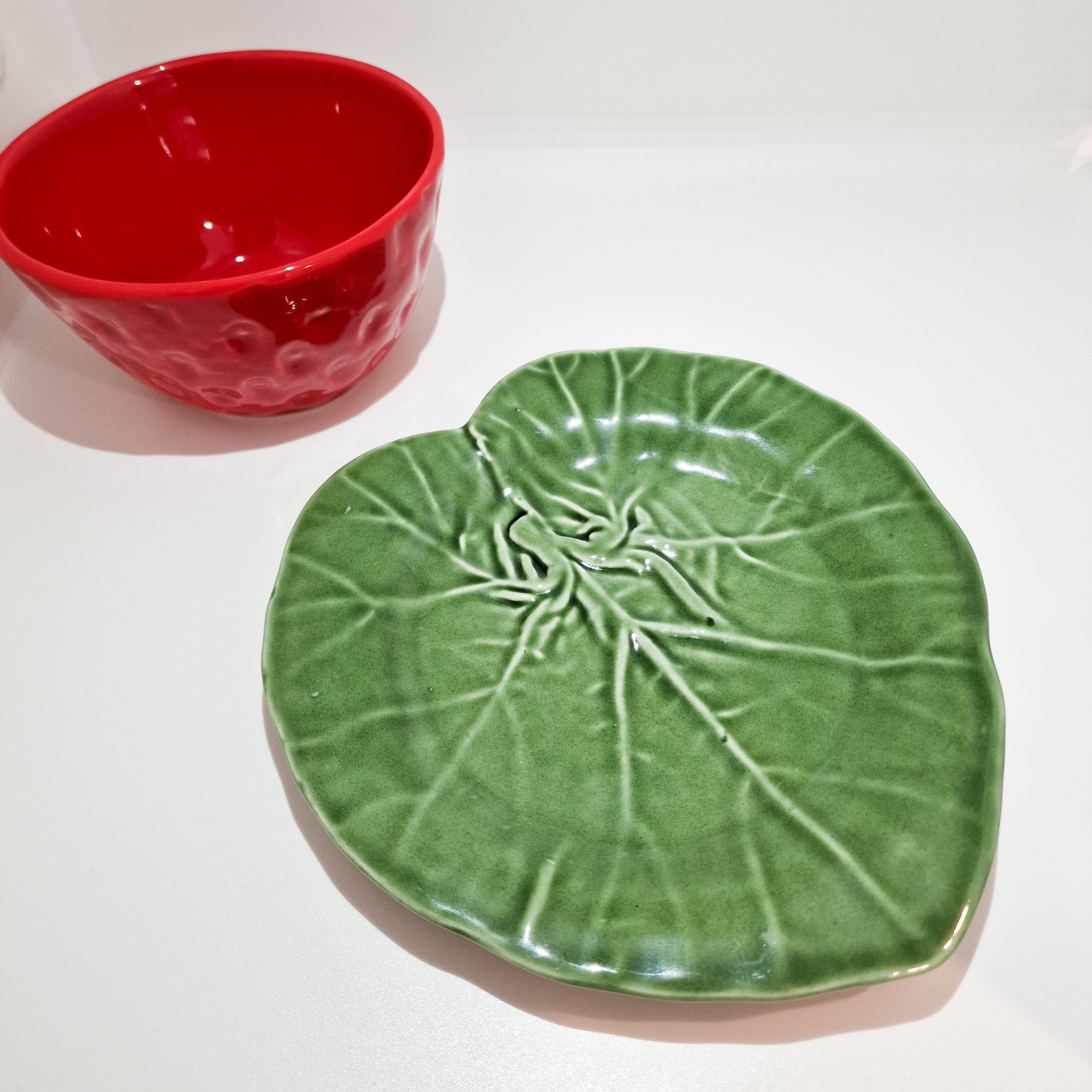 Tigela & Prato Morango 14,50 € Desconto de %. IVA incluído. Partilhar Comprar Contactar Peças em cerâmica vidrada com representação morango. Sendo esta uma peça artesanal e única, poderá receber uma peça com ligeiras diferenças. Utilidade: servir caldo verde. Tigela: 13cm de diâmetro / 8cm de altura Prato: 18cm de diâmetro As cores dos produtos poderão sofrer ligeiras alterações devido à reprodução fotográfica. Tags ceramicaartesanaldecoraçãoutilitáriotigelaBowlBolCoupelle