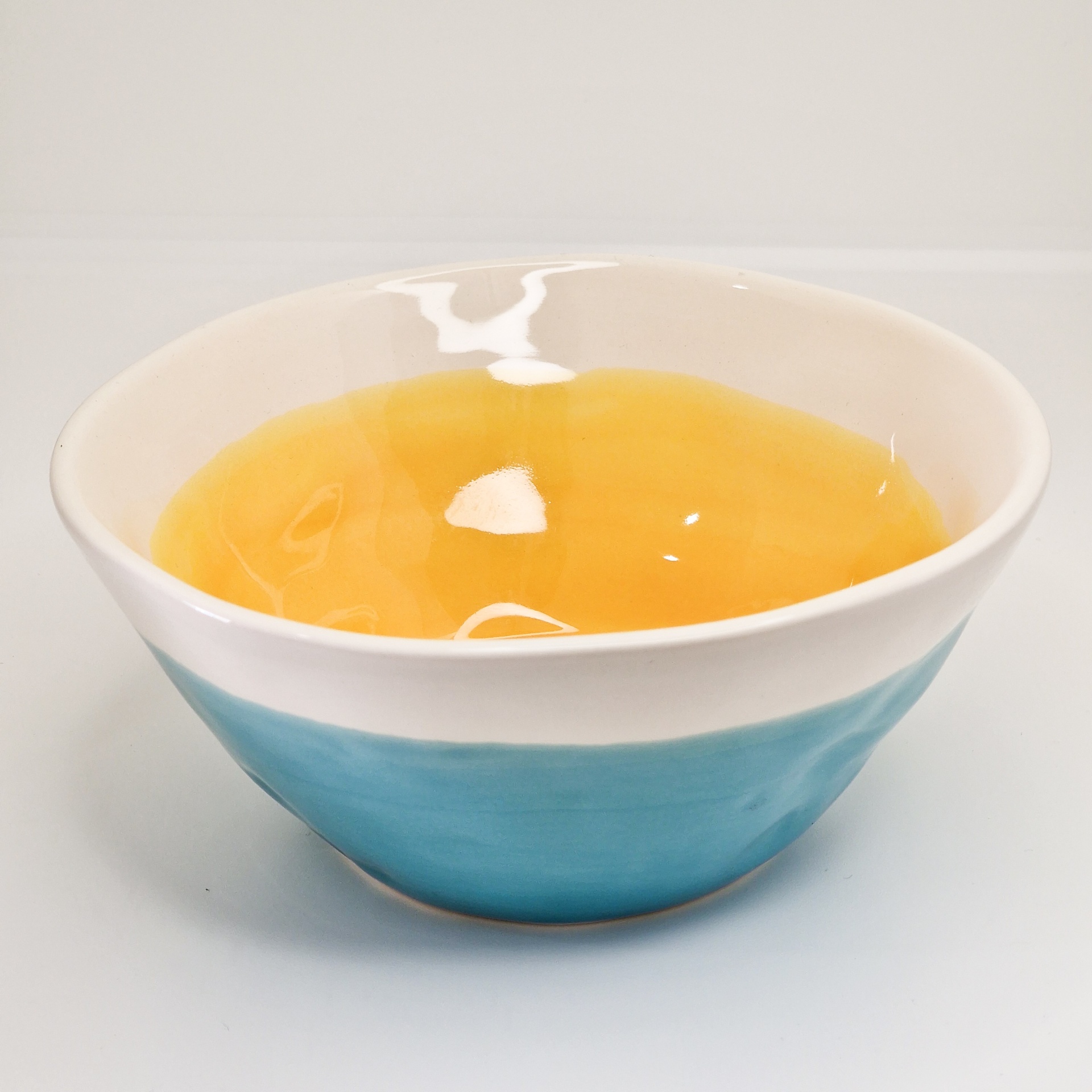 • Tigela branca de cerâmica com interior amarelo-alaranjado