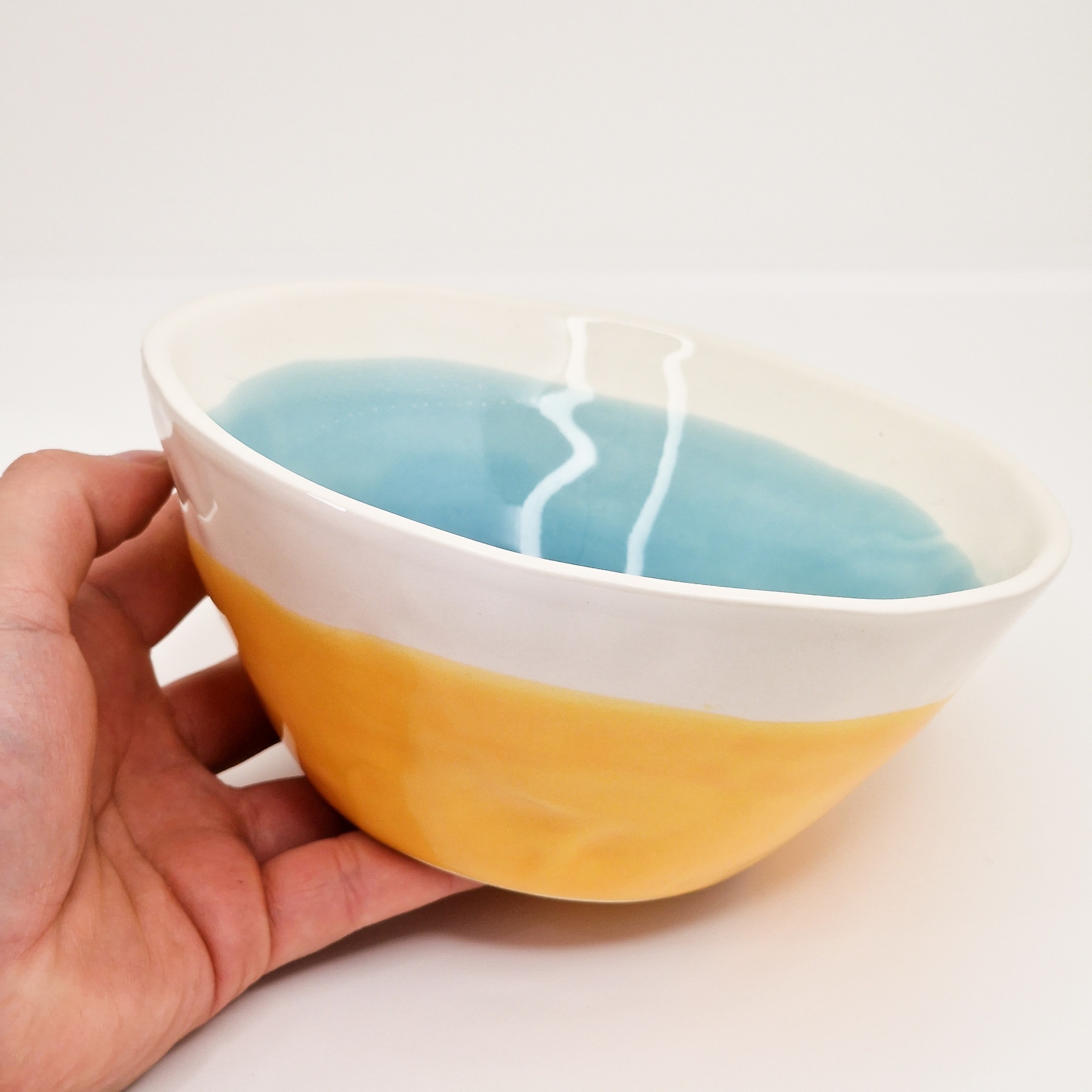 Tigela Média 16,50 € Desconto de %. IVA incluído. Partilhar Comprar Contactar Tigelas feitas em cerâmica com vidrado com cor e com efeito de com paredes onduladas. Sendo esta uma peça artesanal e única, poderá receber uma peça com ligeiras diferenças. Diâmetro: 17cmDiâmetro do fundo: 9cmAltura: 8cm As cores dos produtos poderão sofrer ligeiras alterações devido à reprodução fotográfica. Tags ceramicaartesanaldecoraçãoutilitáriotigelaSaladierBowl