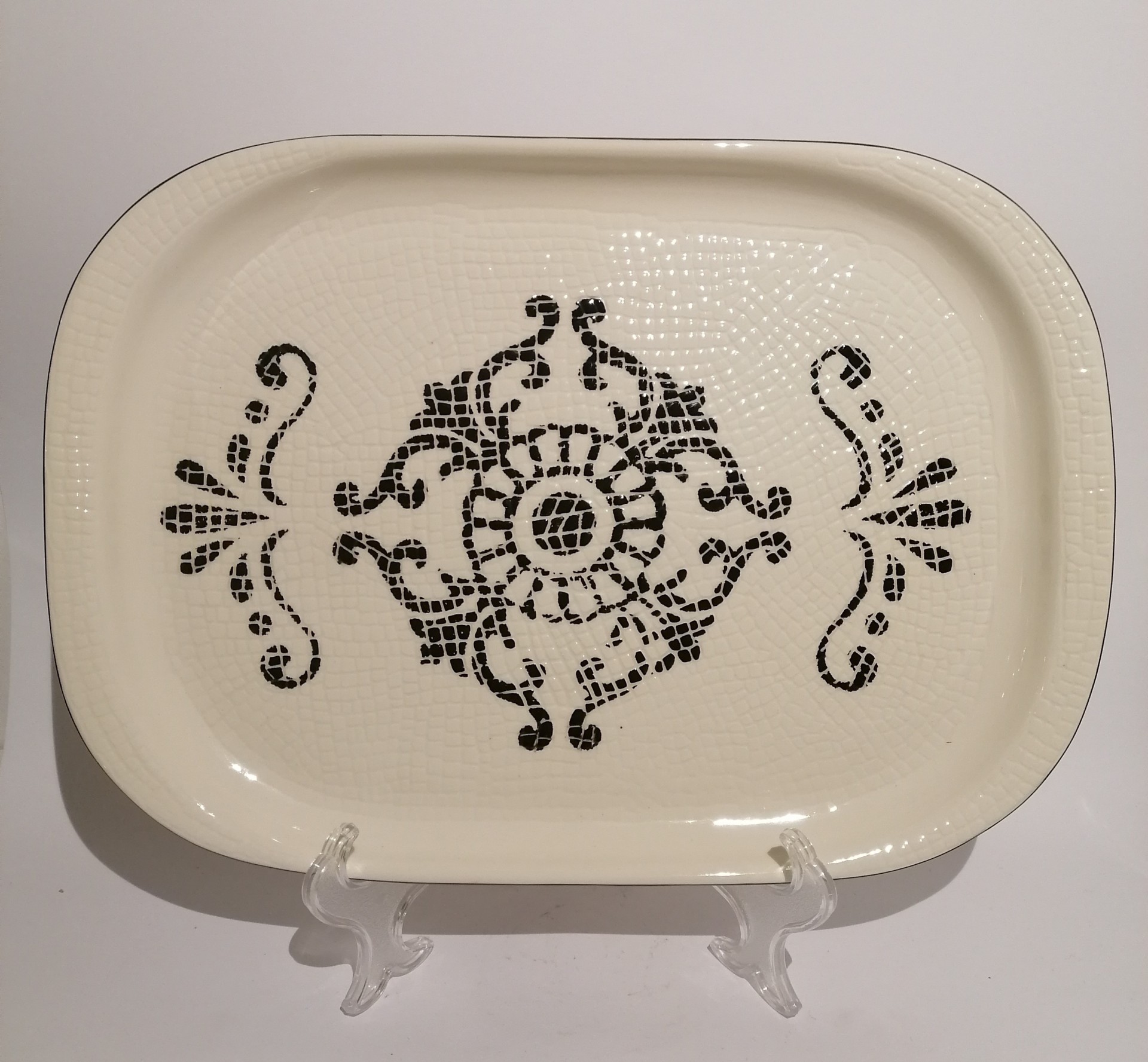 Travessa Calçada Portuguesa - Flor 37,50 € Desconto de %. IVA incluído. Partilhar Comprar Contactar Travessa feita em cerâmica com relevo, com padrão da Calçada Portuguesa com motivo floral. Dimensões: 26cm x 35cm Altura: 3cm As cores dos produtos poderão sofrer ligeiras alterações devido à reprodução fotográfica. Tags travessafloresceramicavidradorelevodecoraçãoutilitáriocinzapretoartesanal Características