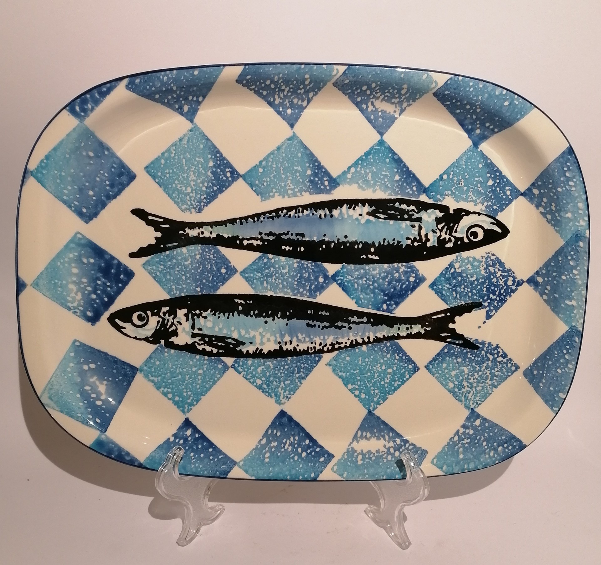 Travessa Sardinhas na Mesa - Azul - Grande 37,50 € Desconto de %. IVA incluído. Partilhar Comprar Contactar Travessa feita em cerâmica com motivos de sardinhas sobre toalha de mesa aos quadrados azuis. Dimensões: 26cm x 35cm Altura: 3cm As cores dos produtos poderão sofrer ligeiras alterações devido à reprodução fotográfica. Tags travessasardinhasutilitáriodecoraçãoceramicaazulfish Características