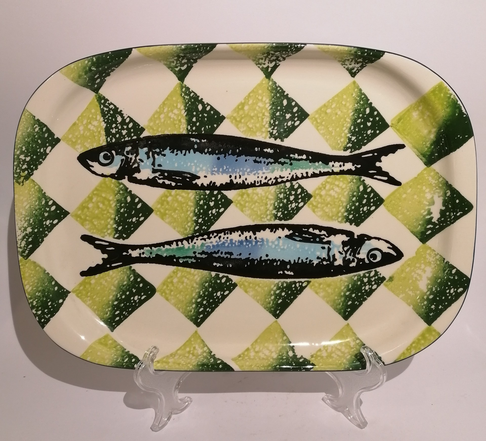 Travessa Sardinhas na Mesa - Verde - Grande 37,50 € Desconto de %. IVA incluído. Partilhar Comprar Contactar Travessa feita em cerâmica com motivos de sardinhas sobre toalha de mesa aos quadrados verdes. Dimensões: 26cm x 35cm Altura: 3cm As cores dos produtos poderão sofrer ligeiras alterações devido à reprodução fotográfica. Tags travessasardinhasutilitáriodecoraçãoceramicaverdefish Características