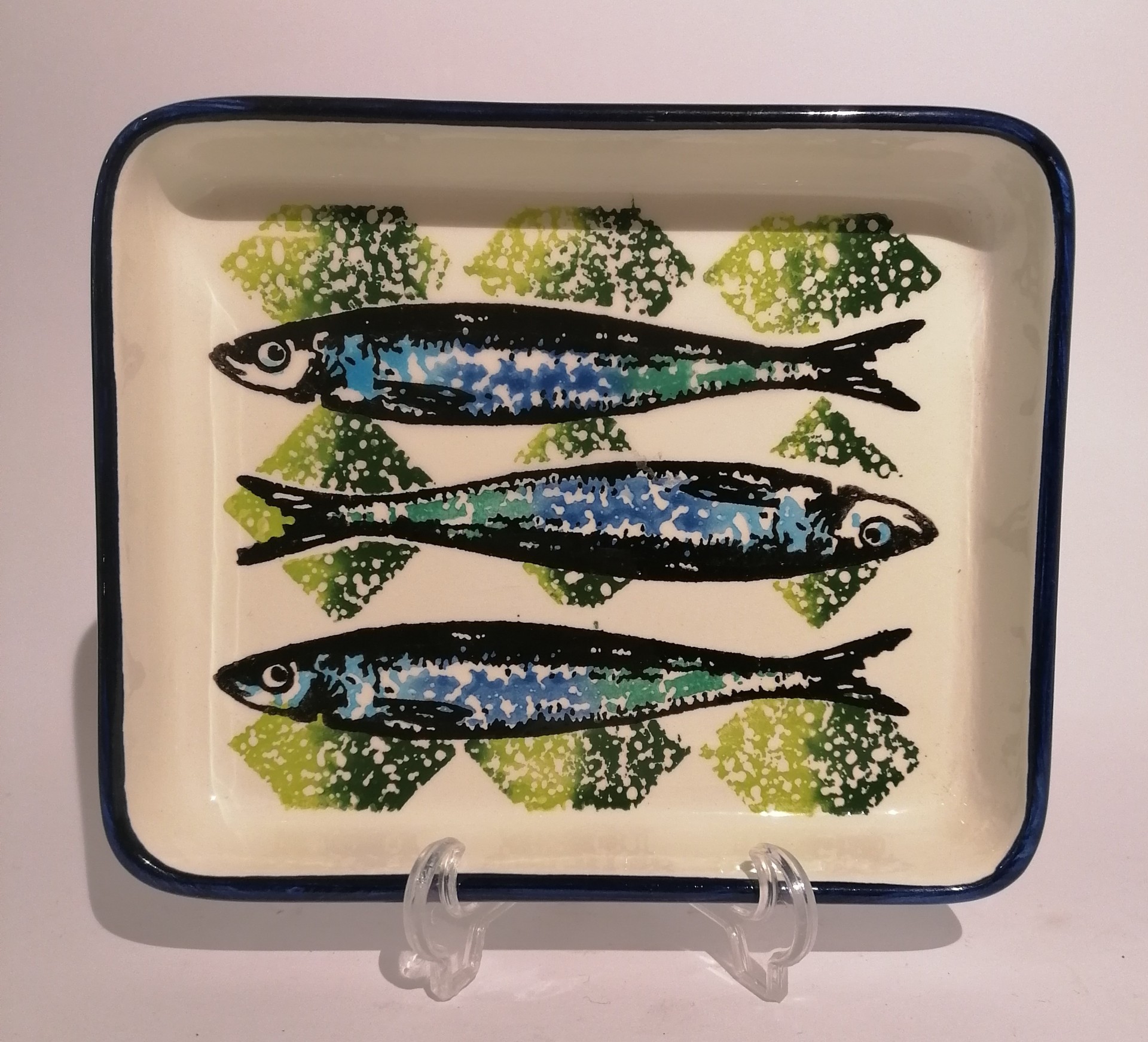 Travessa Sardinhas na Mesa - Verde - Pequena 17,00 € Desconto de %. IVA incluído. Partilhar Comprar Contactar Travessa feita em cerâmica com motivos de toalha de mesa aos quadrados verdes e sardinhas. Dimensões: 13,50cm x 16,50cm Altura: 3cm As cores dos produtos poderão sofrer ligeiras alterações devido à reprodução fotográfica. Tags travessasardinhasverdeutilitárioartesanalceramicafish