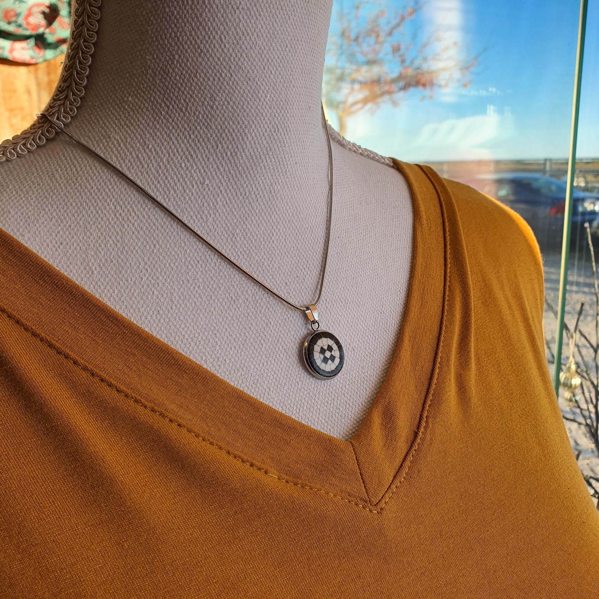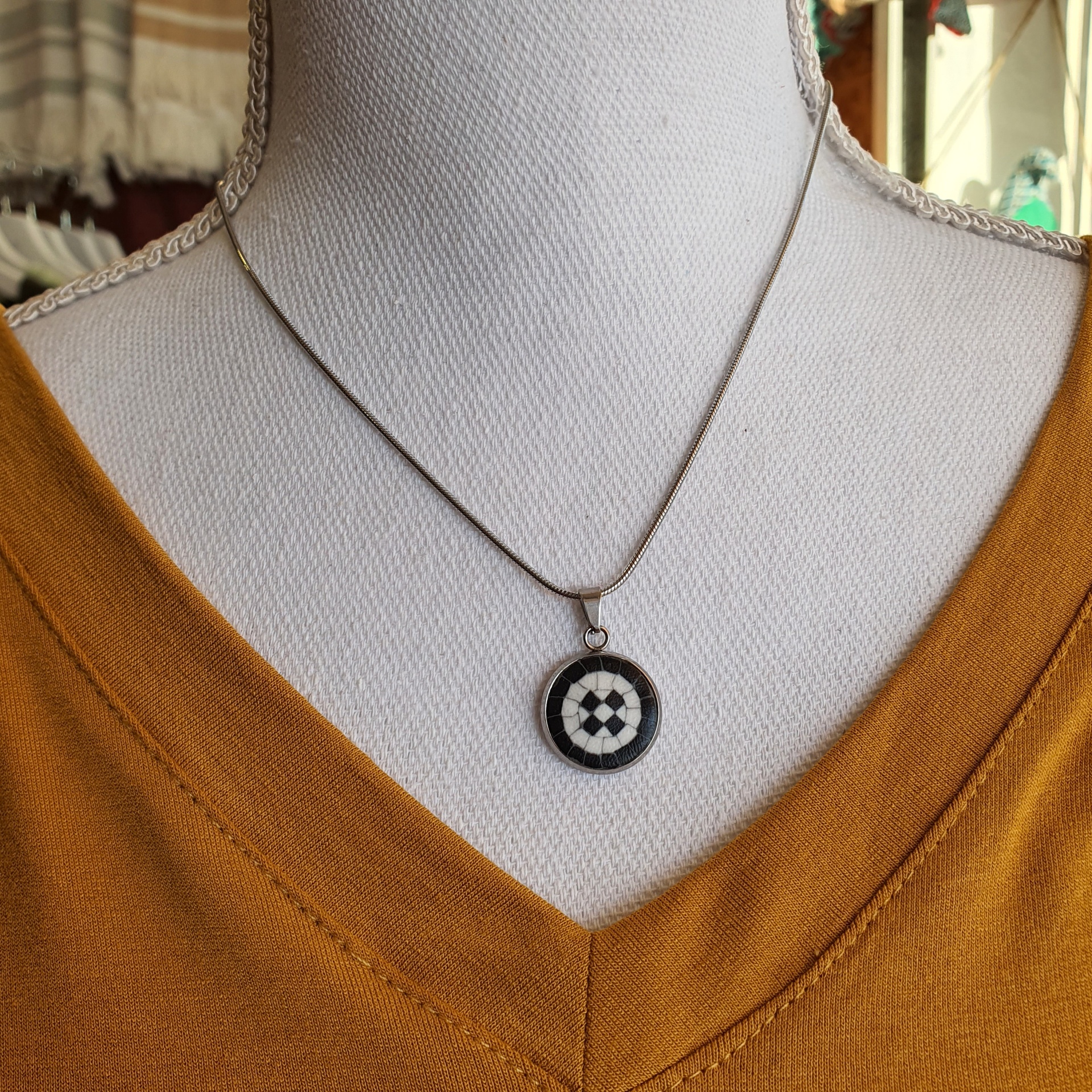 Colar Calçada Portuguesa 15,00 € Desconto de %. IVA incluído. Partilhar Comprar Contactar Características Cores da argila: Branco e Preto Metal: Aço inoxidável Diâmetro da Medalha: 15mm Antialérgico Peso: 5gr aproximadamente As cores dos produtos poderão sofrer ligeiras alterações devido à reprodução fotográfica. Tags colarcolar de açocalçada portuguesacolar Aço inoxidávelaço inoxidável