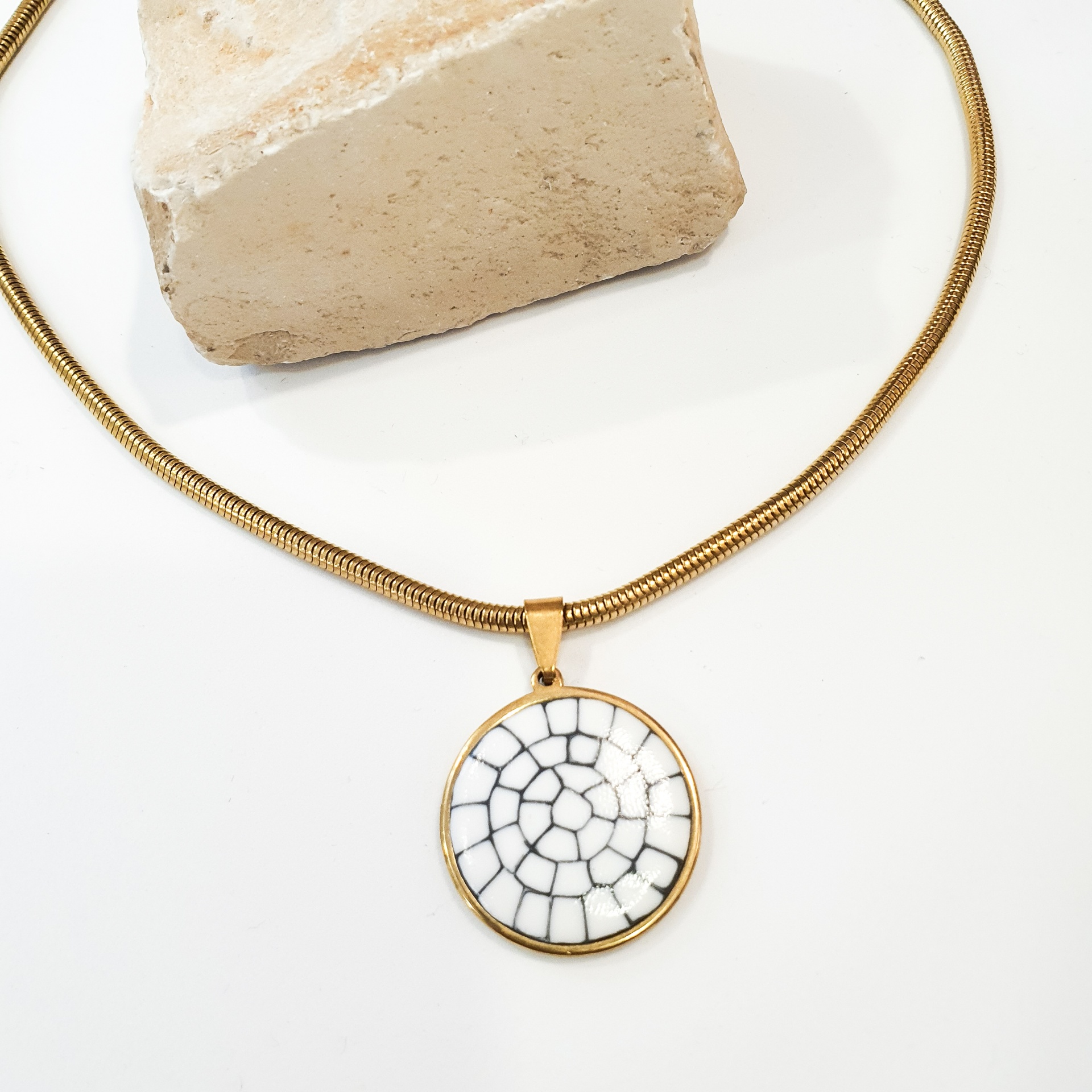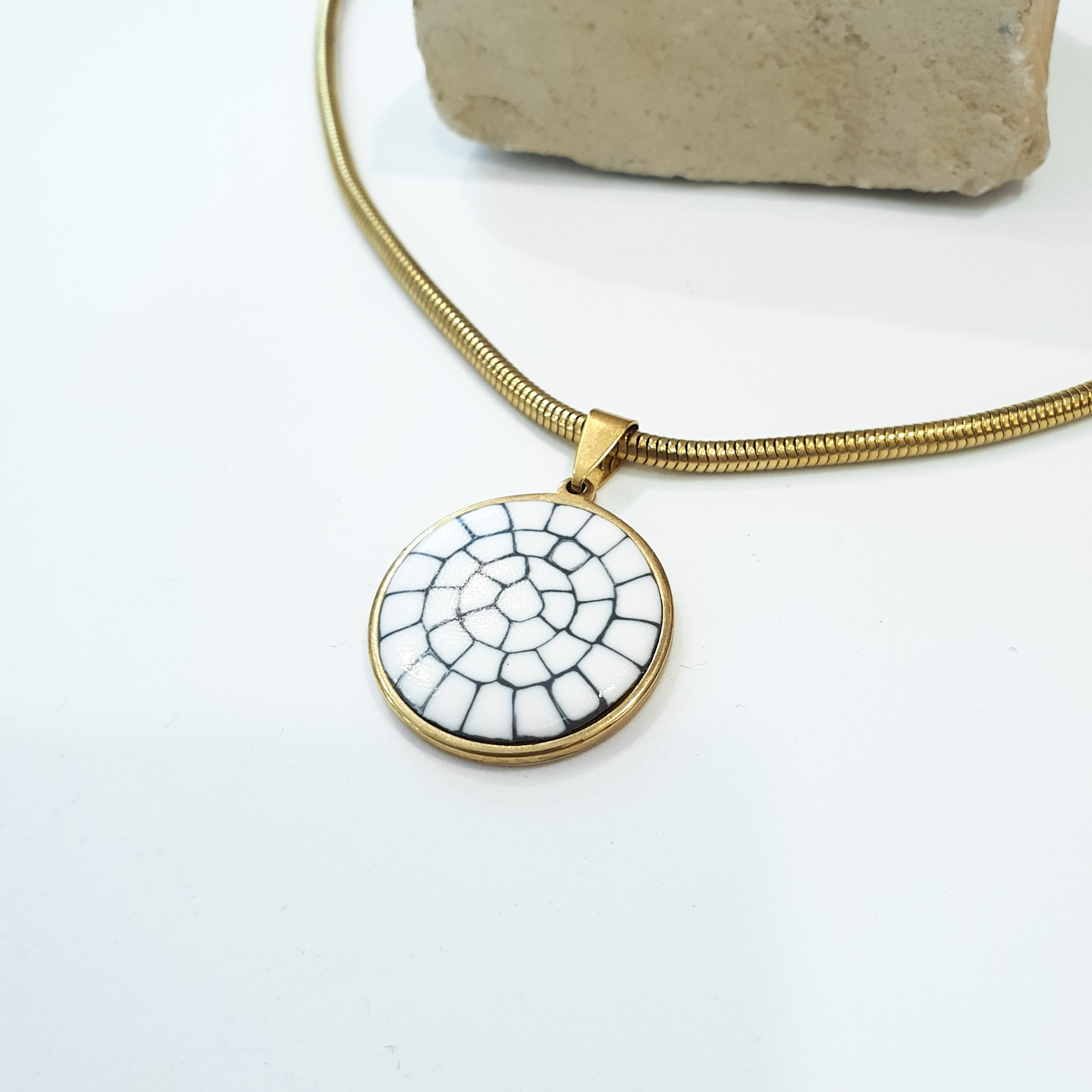 Colar Calçada Portuguesa 24,50 € Desconto de %. IVA incluído. Partilhar Comprar Contactar Características Cores da argila: Branco e Preto Metal: Aço inoxidável dourado Diâmetro da Medalha: 25mm Comprimento da corrente de aço: 45mm Espessura da corrente de aço: 3mm Antialérgico Peso: 20gr aproximadamente As cores dos produtos poderão sofrer ligeiras alterações devido à reprodução fotográfica. Tags colar Aço inoxidávelcolar calçada portuguesacolar dourado Características