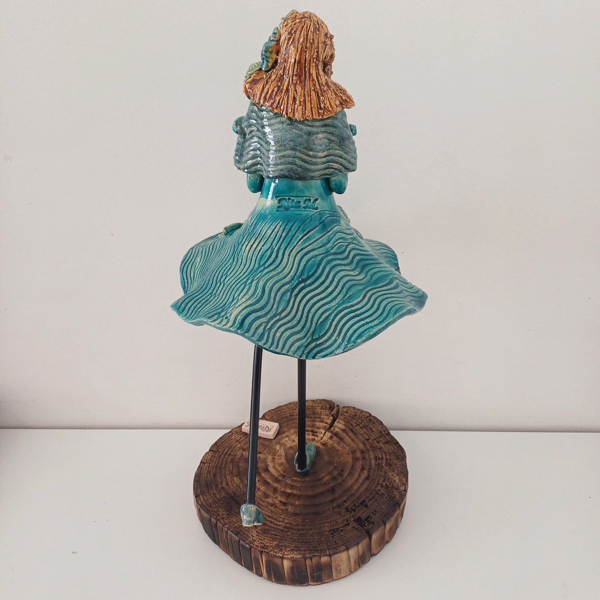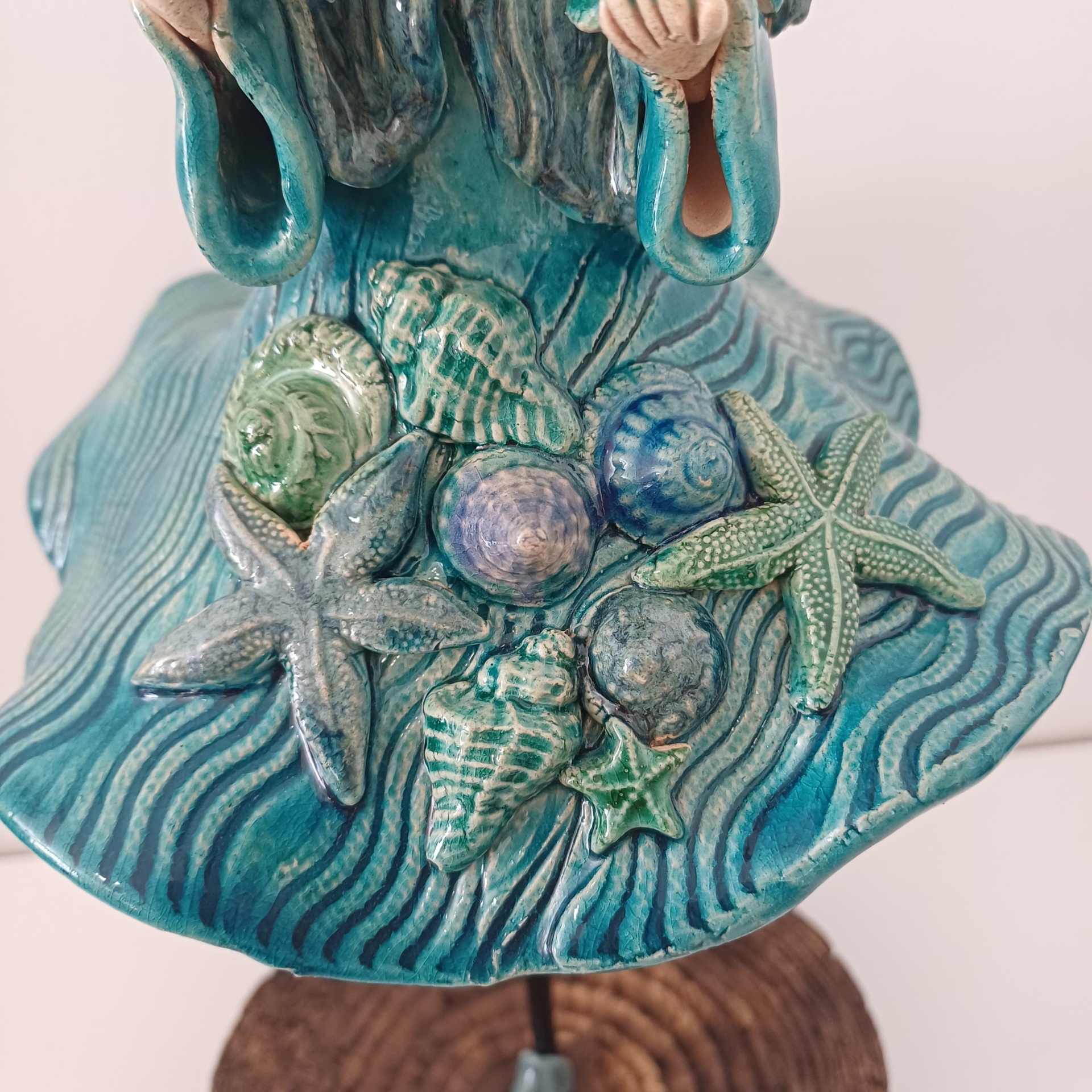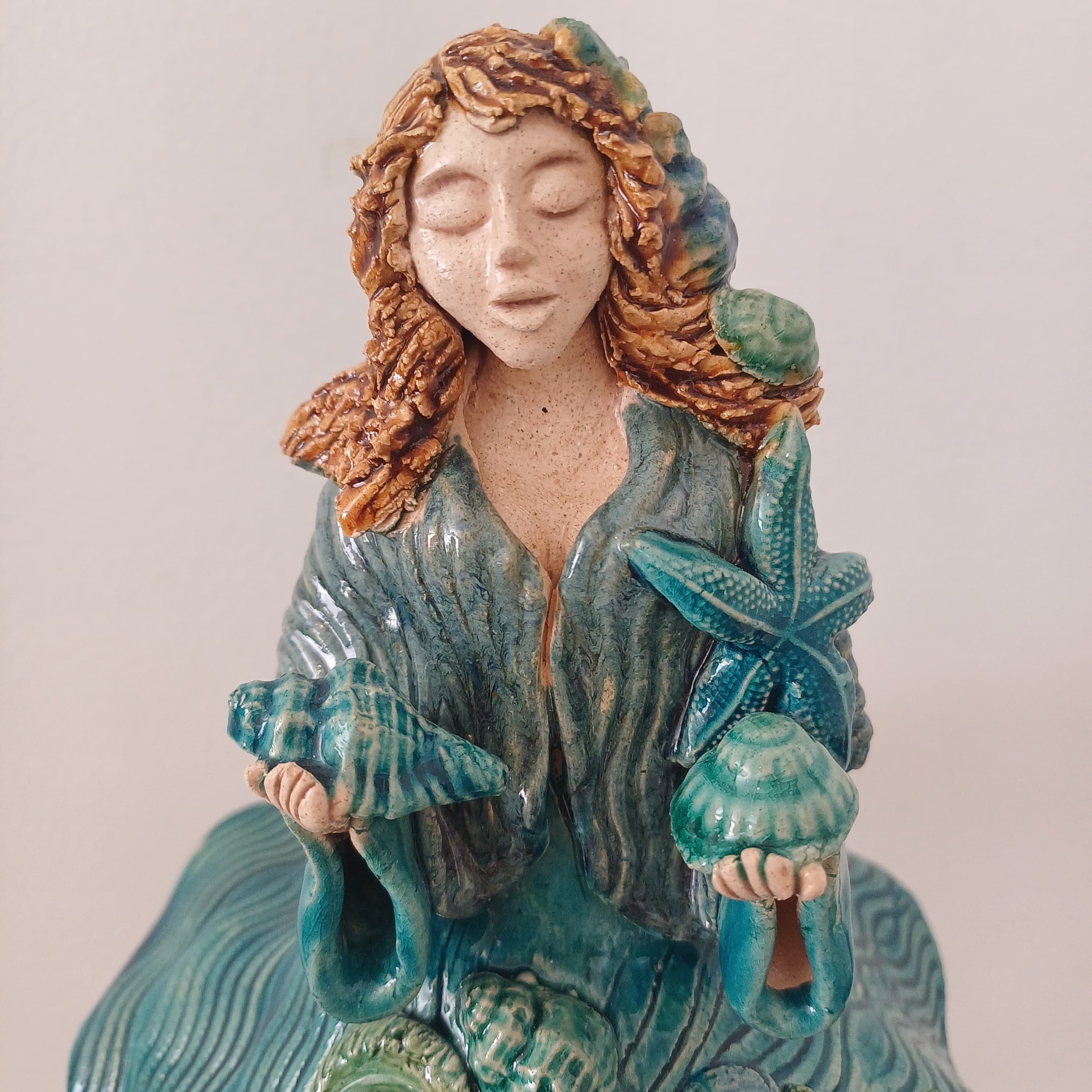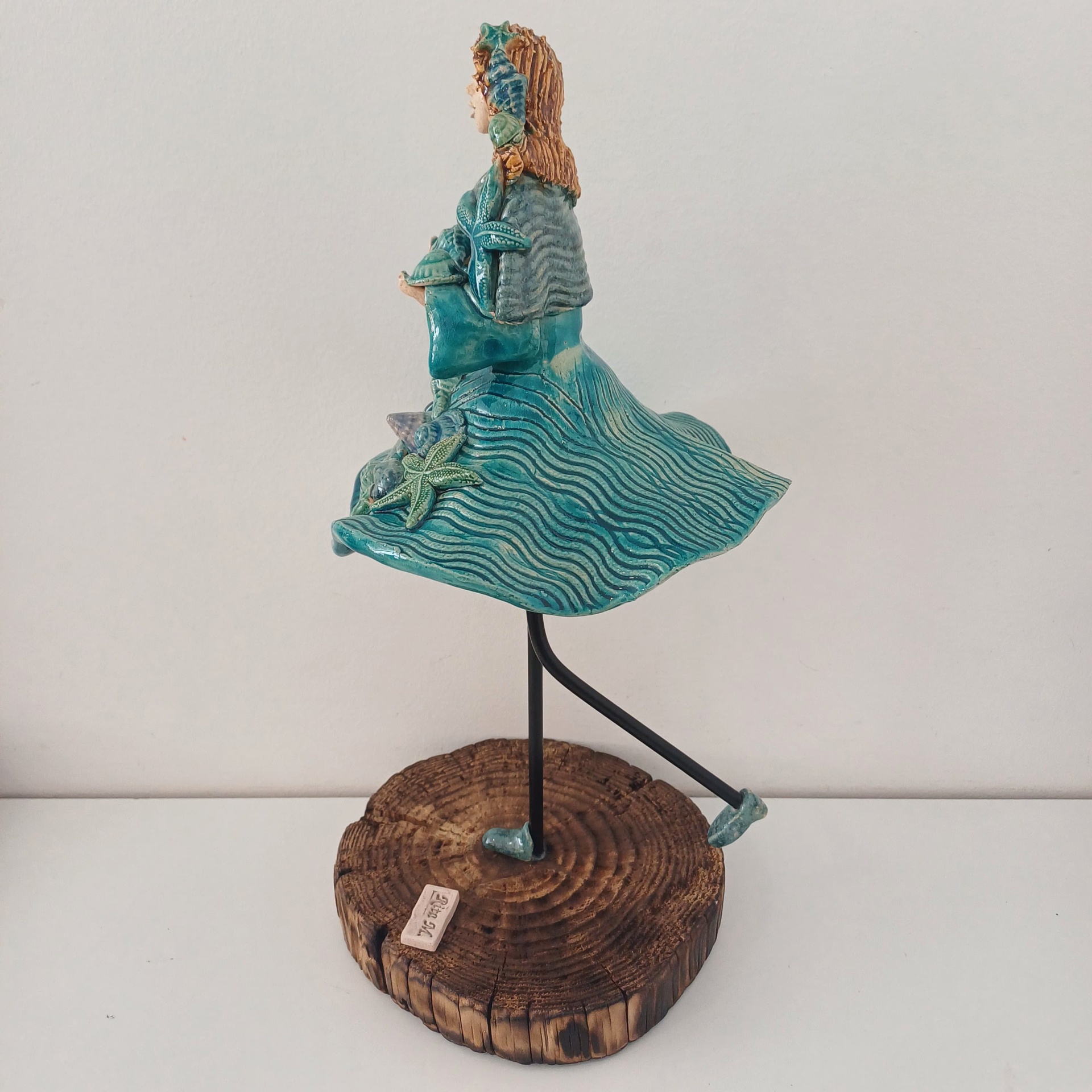 Bailarina do Mar 87,50 € Desconto de %. IVA incluído. Partilhar Comprar Contactar Escultura de cerâmica a representar uma mulher com motivos do mar. Base de Madeira com 15cm de diâmetro, aproximadamente. Altura da peça: 38cm As cores dos produtos poderão sofrer ligeiras alterações devido à reprodução fotográfica. Tags esculturamulherbailarinadecoraçãomarartesanalcerâmicavidradopeça de autor Características