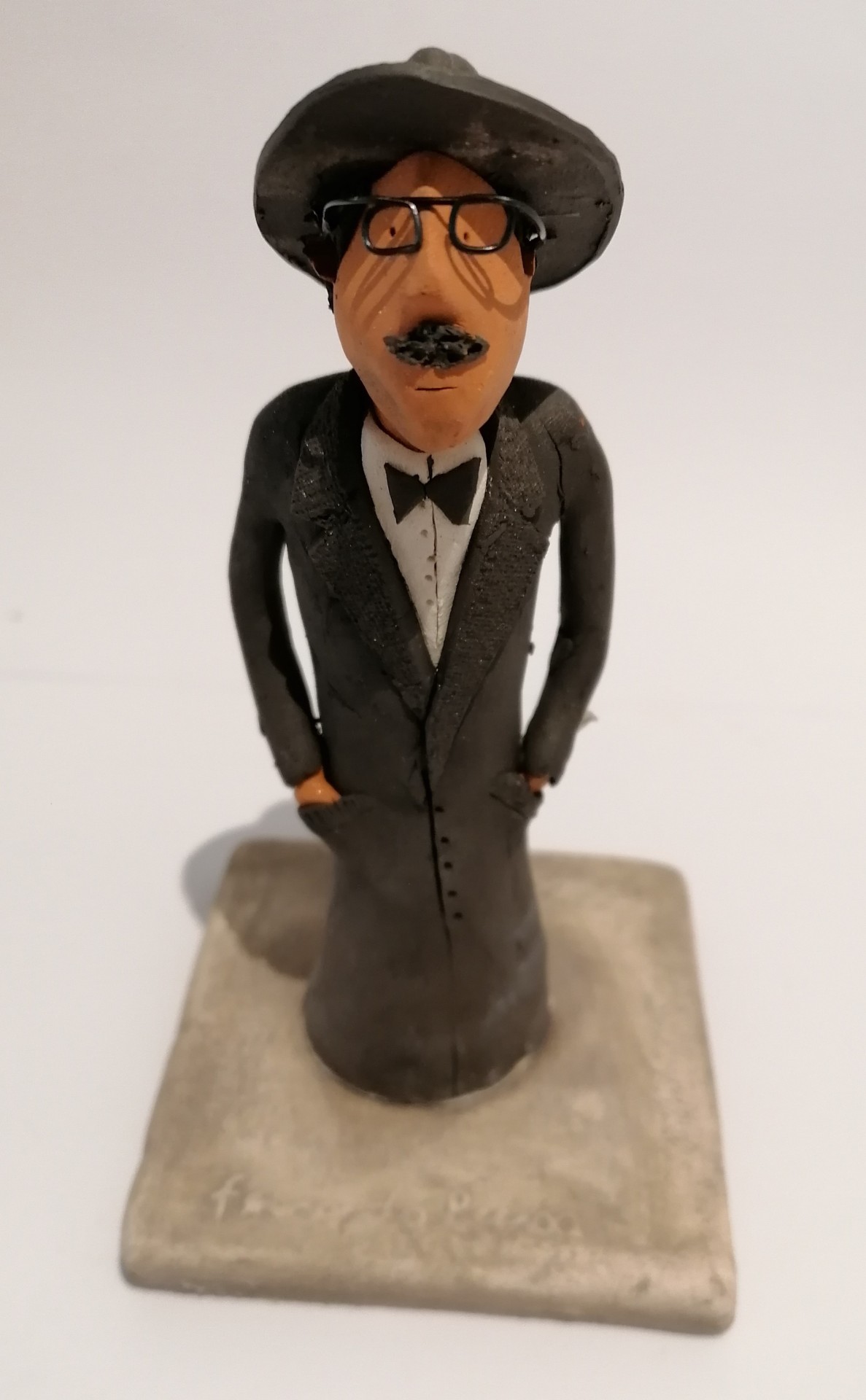 Fernando Pessoa 32,50 € Desconto de %. IVA incluído. Partilhar Comprar Contactar Escultura feita em cerâmica. Altura: 16cm aproximadamente As cores dos produtos poderão sofrer ligeiras alterações devido à reprodução fotográfica.