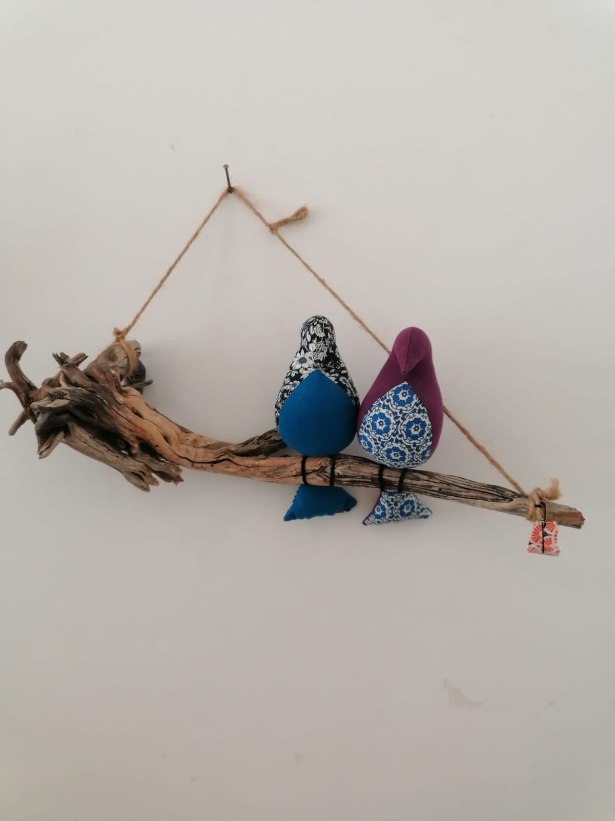 Galho com 2 pássaros 29,00 € Desconto de %. IVA incluído. Partilhar O produto encontra-se sem stock. Galho de raíz de esteva com passarinhos de tecido, para pendurar numa parede ou de forma suspensa. Artigo de decoração e feito de forma artesanal. Altura de cada pássaro: 17cm Esta é uma peça única. As cores dos produtos poderão sofrer ligeiras alterações devido à reprodução fotográfica. Tags passarosgalho de pássarosartesanaldecoracao quartodecoração jardimdecoraçãooiseauxbird