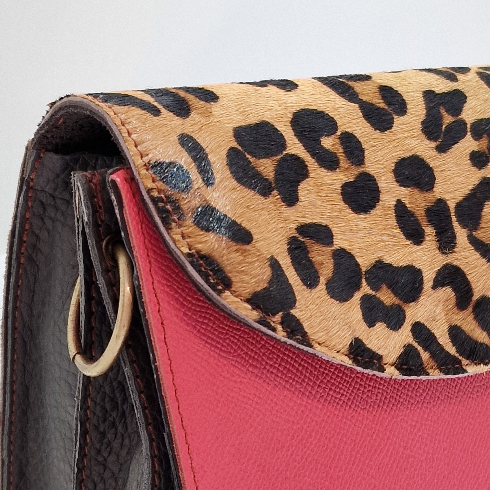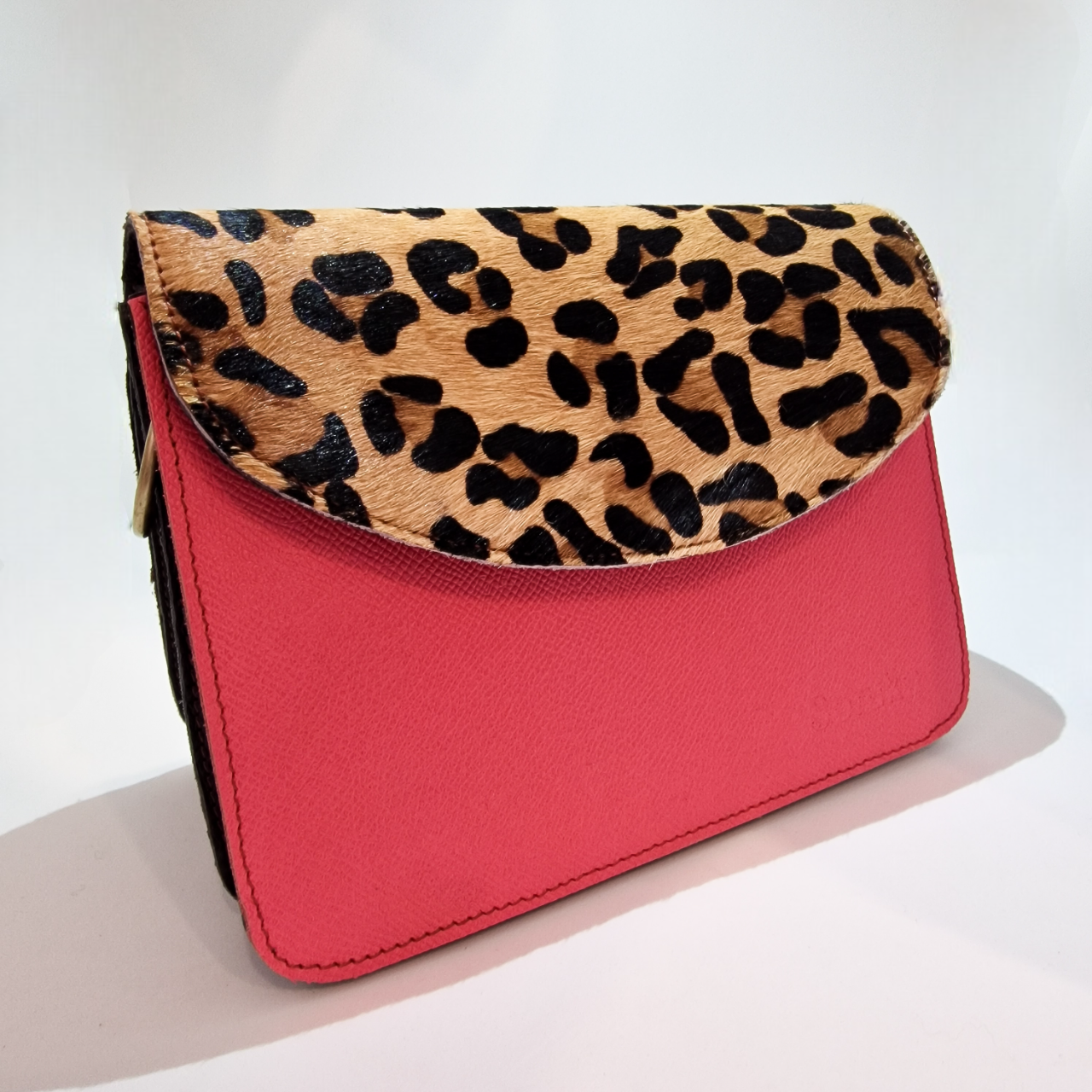 • Mala vermelha com aba em padrão animal print castanho e preto