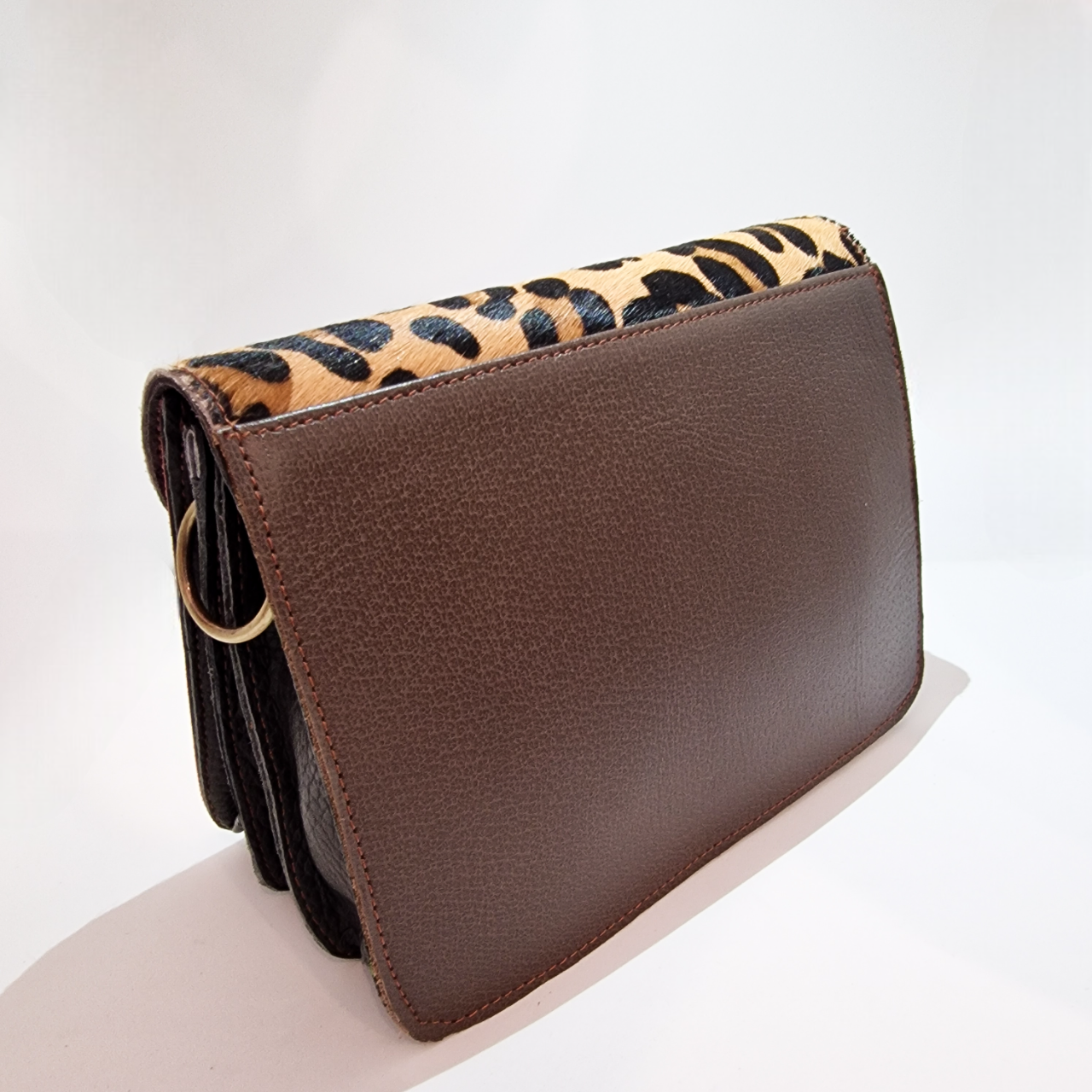 • Carteira castanha com padrão animal print e fecho dourado