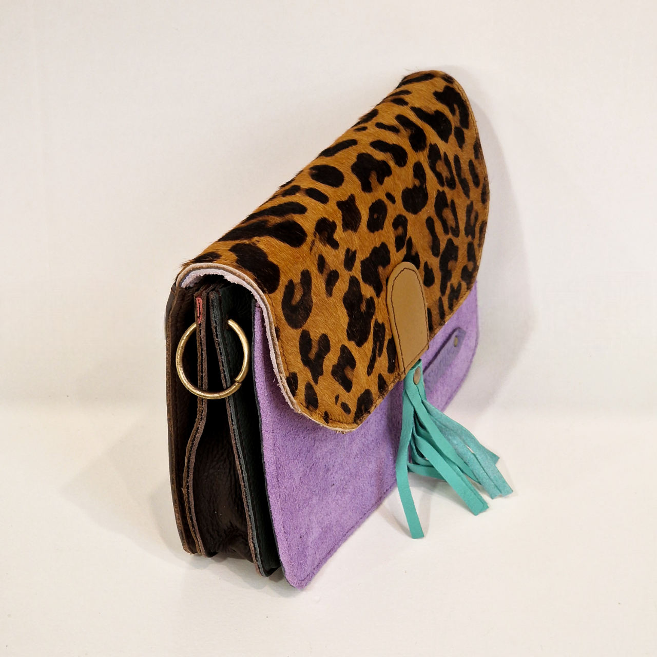 Mala 100% couro reciclado, inclui uma alça de couro ajustável e extensível.