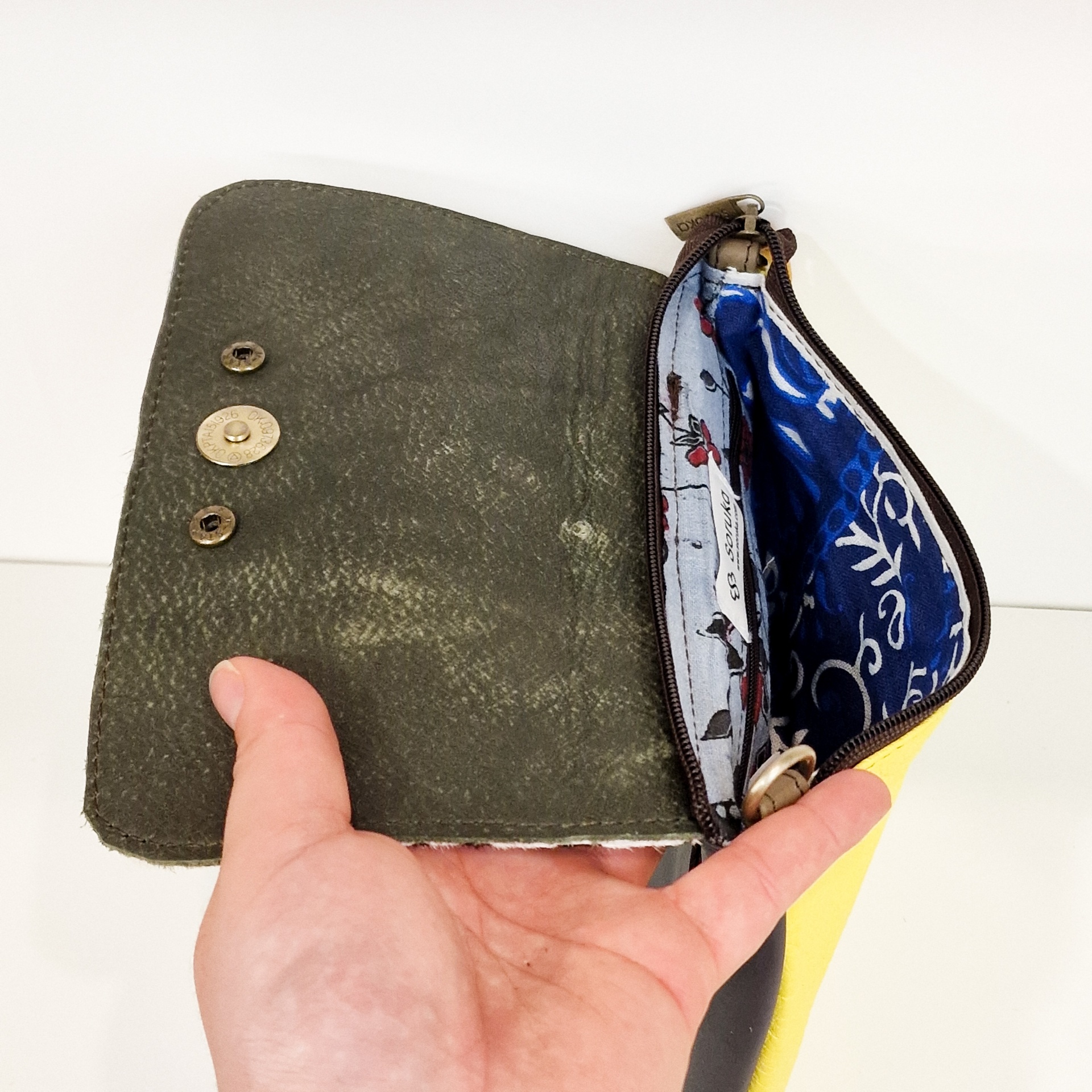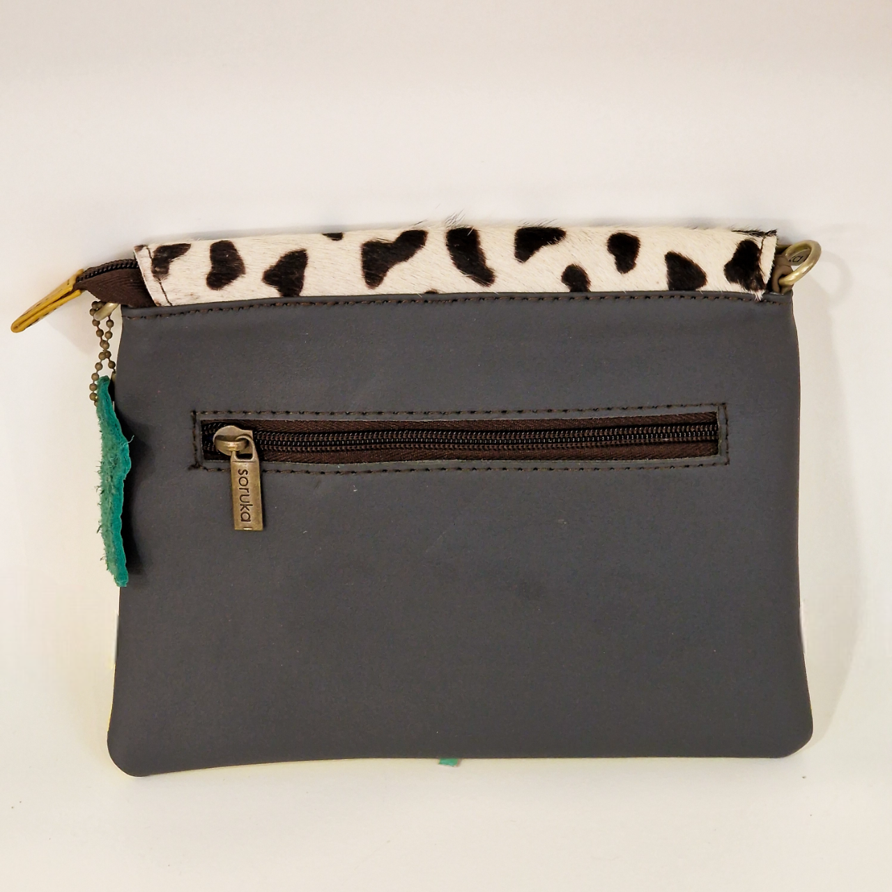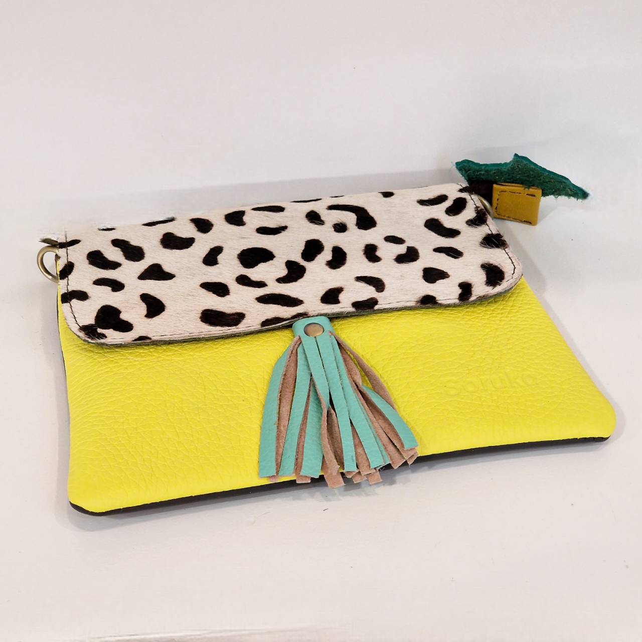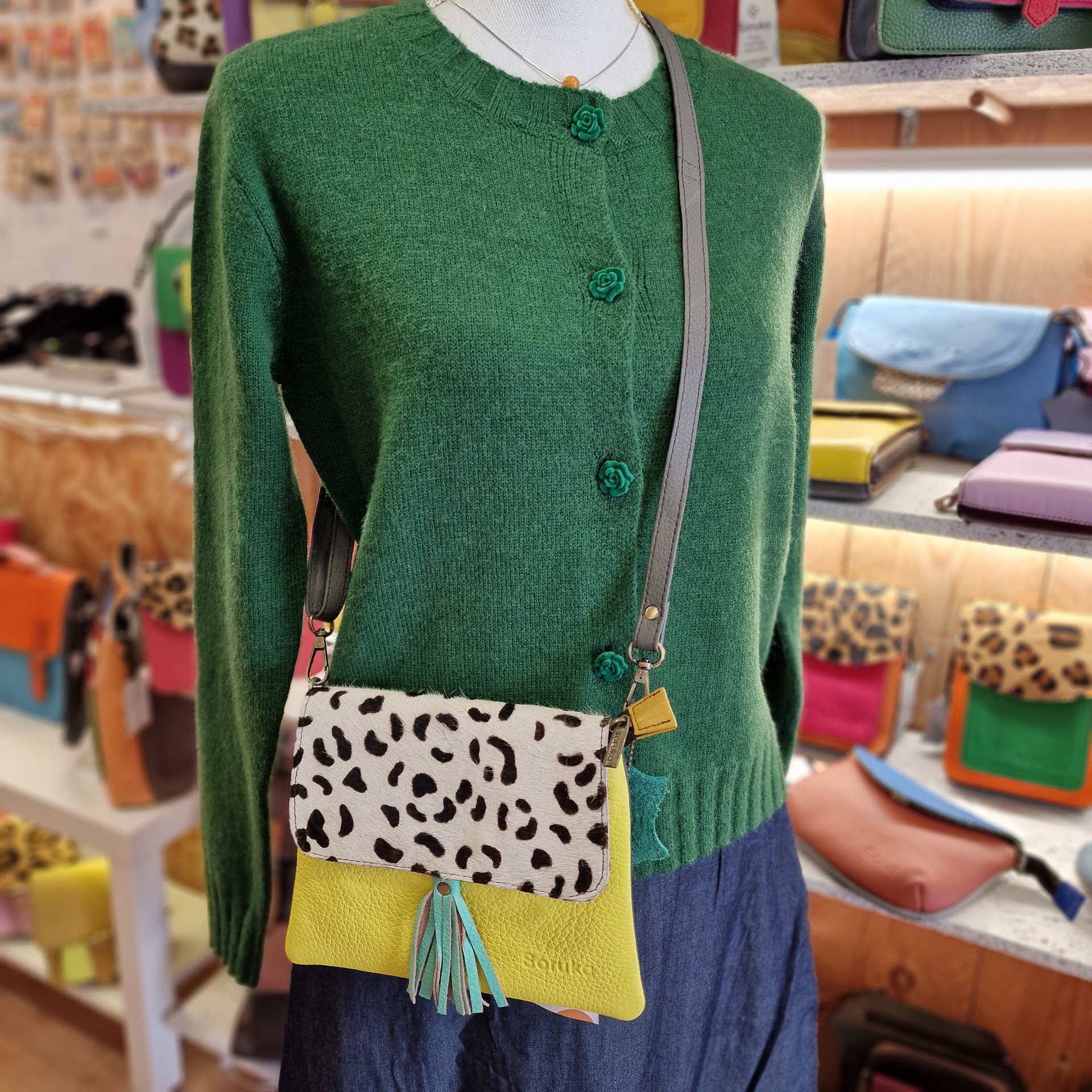 Mala 100% couro reciclado, inclui uma alça de couro ajustável e extensível.
