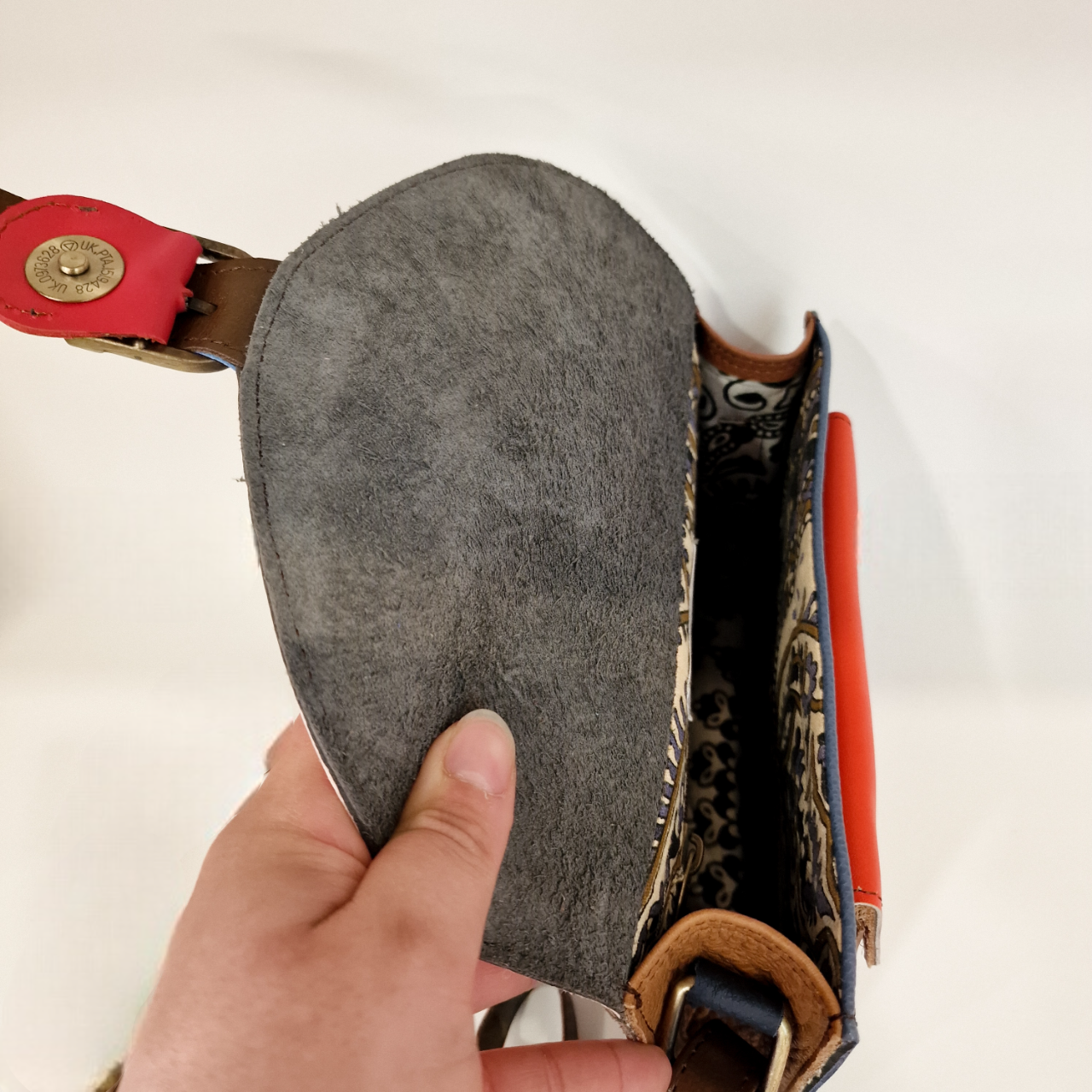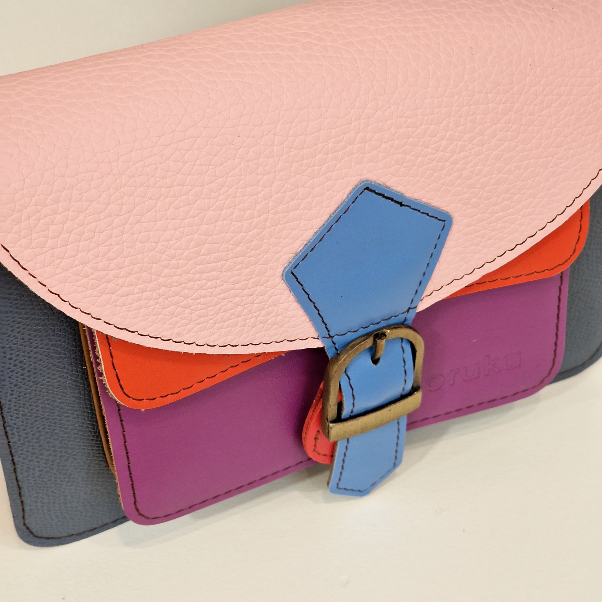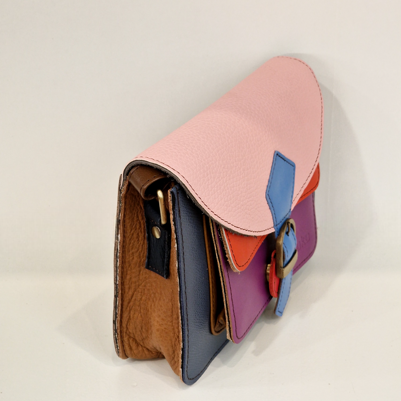 • Mala de cabedal colorido retangular com fivela