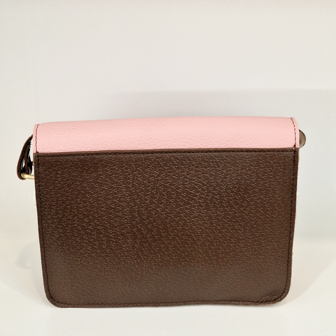 • Mala de mão castanha e rosa detalhe texturizado.