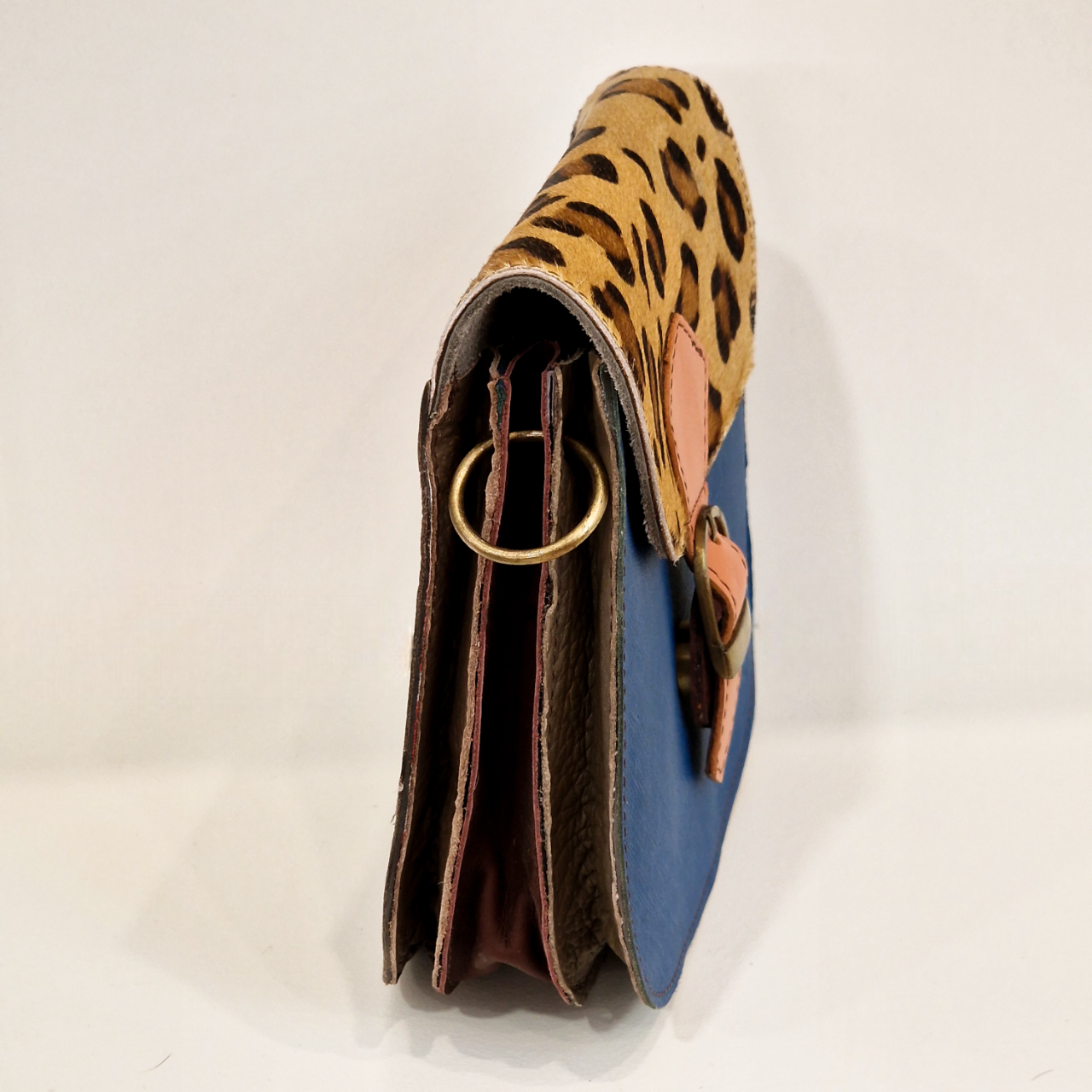 Mala 100% couro reciclado, inclui uma alça de couro ajustável e extensível.