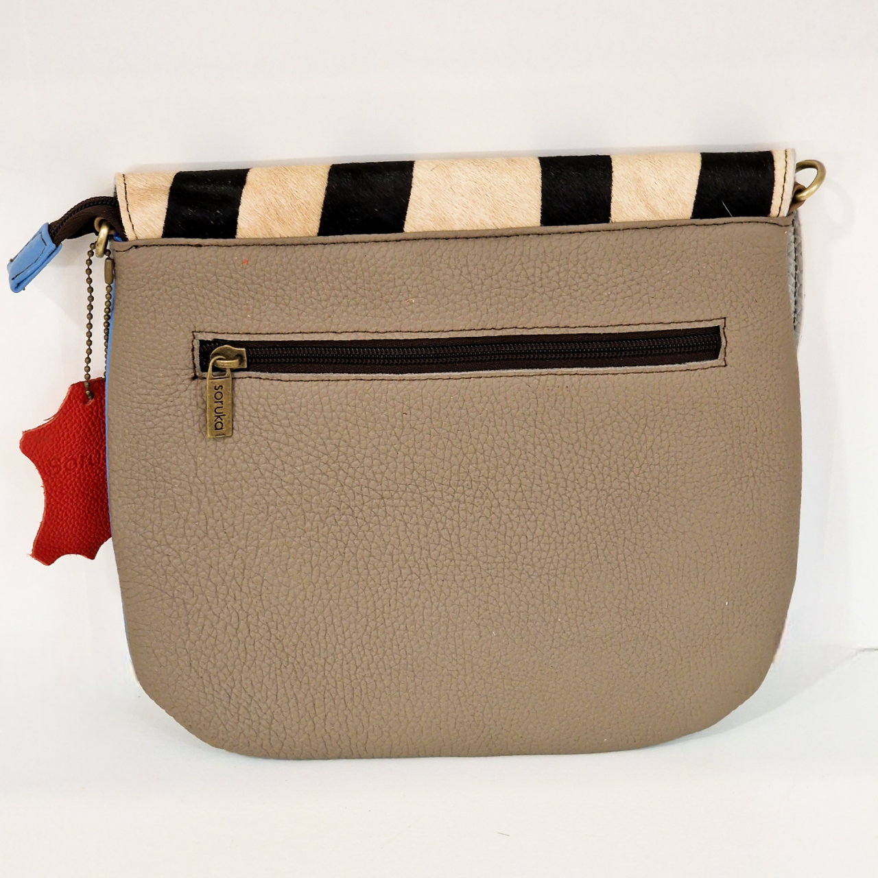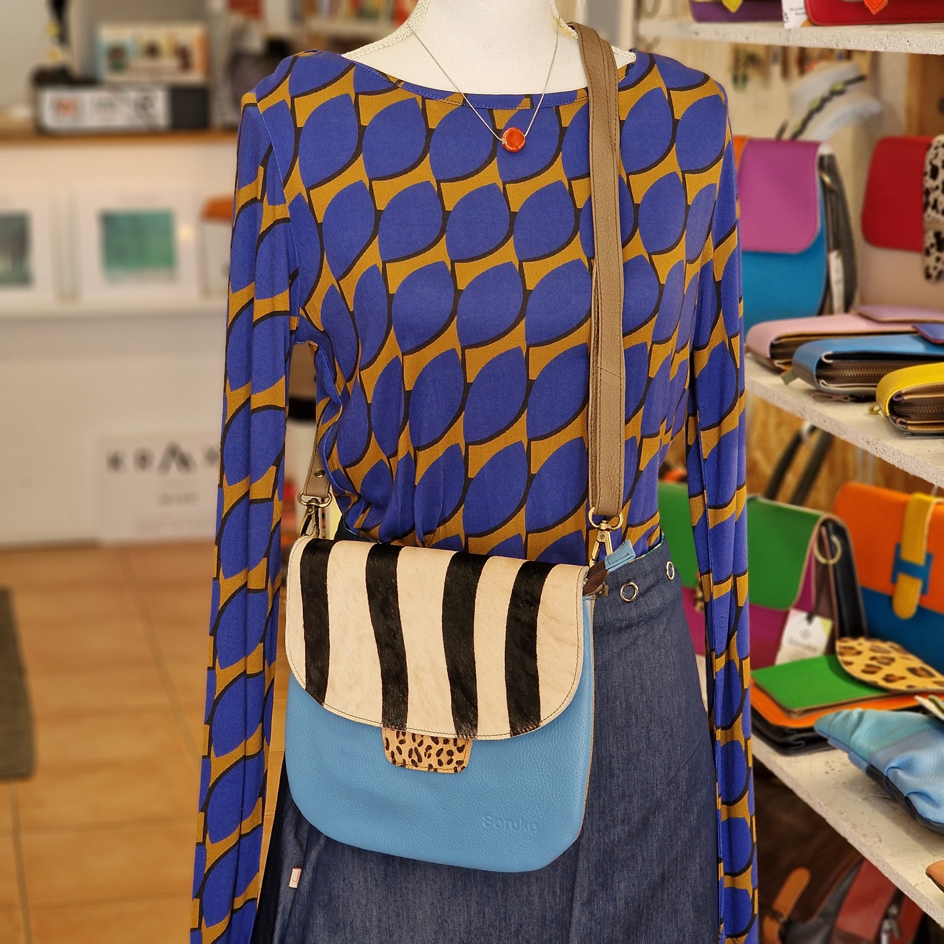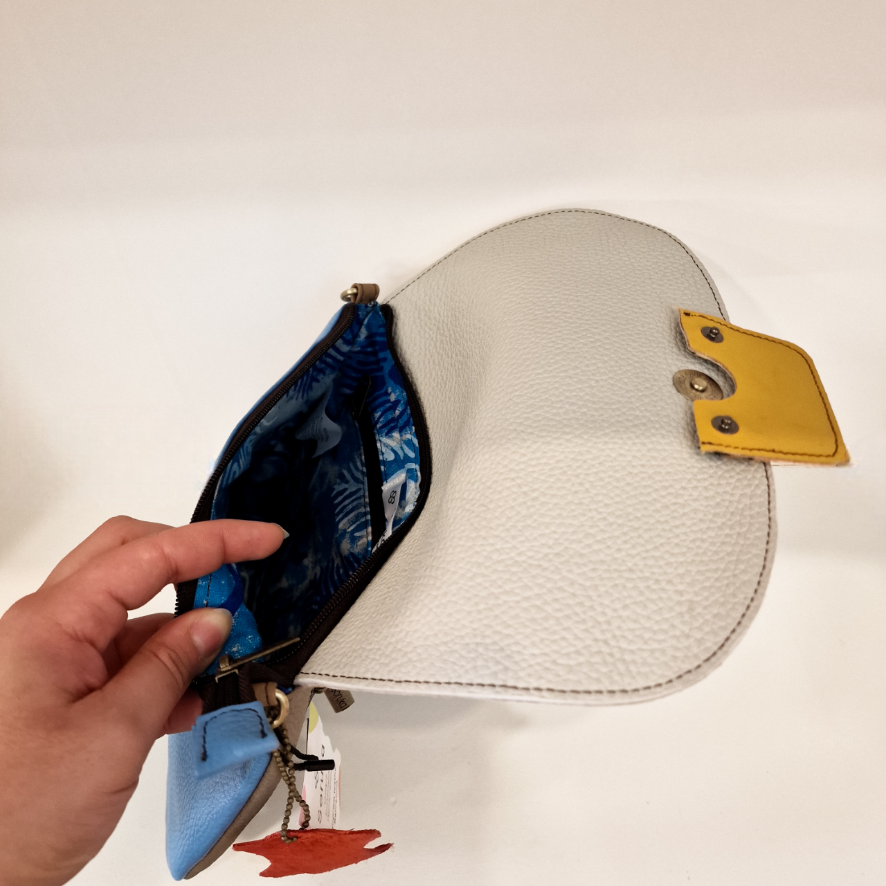 Mala 100% couro reciclado, inclui uma alça de couro ajustável e extensível.